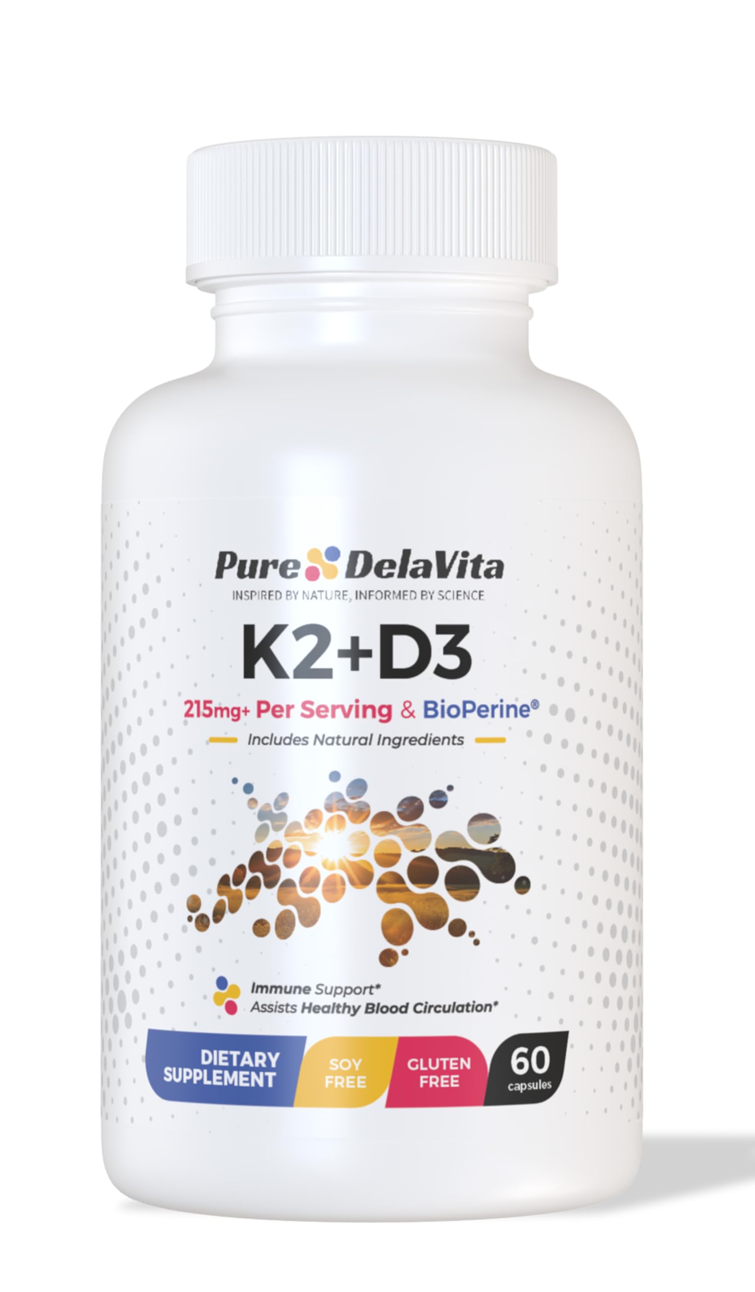 Pure DelaVita is dedicated to blending natural ingredients with advanced science. OurK2 D3 with BioPerinesupplement delivers targeted nutrients to support bone strength, cardiovascular health, and immune resilience — all in one veggie capsule. Formulated in the USA, non-GMO, gluten free, and soy free.