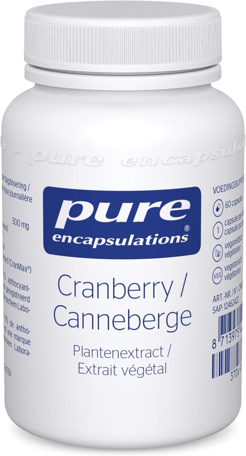 Free From: All Pure Encapsulations products are free from wheat, eggs, tree nuts, peanuts, gluten, artificial colors, flavors, sweeteners, coatings and shellac, GMOs, unnecessary binders, fillers and preservatives. Pure Quality: Our supplements are made with only premium ingredients from trusted suppliers and guided by our nutritionists. They are carefully produced and tested to verify their potency and purity. Bio-Shield Technology: Patented process ensures better absorption in the gastrointestinal tract for maximum effectiveness. Hygiene from within: Supports personal hygiene from within, thanks to the powerful effect of cranberry extract. Feminine Comfort: Promotes feminine comfort in combination with drinking enough water (1.5 l per day) for optimal hydration.Pure Encapsulations - Cranberry- Veenbessenextract - Antioxidant voor het Welzijn van de Vrouw - Zeer Absorbeerbaar - 60 capsulesVrij Van: Alle producten van Pure Encapsulations zijn vrij van tarwe, eieren, boomnoten, pinda's, gluten, kunstmatige kleurstoffen, smaken, zoetstoffen, coatings en schellak, GGO's, onnodige bindmiddelen, vulstoffen en conserveermiddelen. Pure Kwaliteit: Onze supplementen worden gemaakt met alleen premium ingrediënten van vertrouwde leveranciers en begeleid door onze voedingsdeskundigen. Ze worden zorgvuldig geproduceerd en getest om hun potentie en zuiverheid te verifiëren. Bio-Shield Technologie: Gepatenteerd proces zorgt voor betere absorptie in het maagdarmkanaal, voor maximale effectiviteit. Hygiëne van Binnenuit: Ondersteunt persoonlijke hygiëne van binnenuit, dankzij de krachtige werking van cranberry-extract. Vrouwelijk Comfort: Bevordert vrouwelijk comfort in combinatie met het drinken van voldoende water (1,5 l per dag) voor optimale hydratatie.