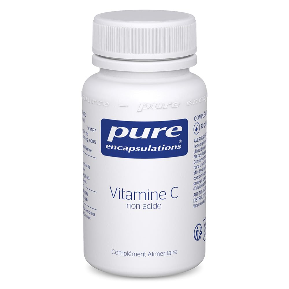 : Vitamin C 1000 combines calcium ascorbate, magnesium ascorbate, and potassium ascorbate to create a pH-neutral vitamin C suitable for sensitive individuals. What is ascorbic acid? Ascorbic acid is vitamin C. Vitamin C contributes to normal psychological function and the normal functioning of the nervous system. Vitamin C contributes to the reduction of tiredness and fatigue. How is ascorbic acid different? [Company Name] manufactures research-based, hypoallergenic dietary supplements designed to provide predictable results. Our supplements are manufactured to avoid artificial colors, flavors, dyes, sweeteners, magnesium stearate, or contaminants. Ingredients: Magnesium ascorbate, calcium ascorbate, potassium ascorbate, hydroxypropyl methylcellulose (capsule), antioxidant: ascorbyl palmitate. P.when('A').execute(function(A) { A.on('a:expander:toggle_description:toggle:collapse', function(data) { window.scroll(0, data.expander. expander[0].offsetTop-100) }) }) Directions for use: 1 capsule per day with a meal. Safety Warning: Food supplements are not a substitute for a varied and balanced diet and a healthy lifestyle. This product is not recommended for people with kidney failure. Do not exceed the recommended daily dose. Keep out of reach of young children. store in a cool, dry place. Contains a desiccant sachet to guarantee product quality not suitable for consumption. See moreVegetarian, Vegan, and Just the Essentials: Our food supplements are free of magnesium stearate, coatings, flavorings, colorings, artificial sweeteners, gluten, and lactose. Pure Ingredients: We develop high-quality nutritional supplements without non-essential additives and have guaranteed the delivery of micronutrients with optimal absorption and tolerance for everyone for over 30 years. Active Ingredients: One of the main antioxidants, buffered vitamin C 1000 has a neutral pH for people with sensitive digestion. Collagen Formation: Contributes to normal collagen formation for the normal function of blood vessels, bones, gums, teeth, skin, and cartilage. Immune System Support: Vitamin C contributes to the reduction of tiredness and fatigue and to the maintenance of normal nervous and immune system function. It also helps protect cells from oxidative stress.Description du produit La vitamine C 1000 de combine l'ascorbate de calcium, l'ascorbate de magnésium et l'ascorbate de potassium pour créer une vitamine C à pH neutre pour les personnes sensibles. Qu'est-ce que l'acide ascorbique ? L'acide ascorbique est la vitamine C. La vitamine C contribue à la fonction psychologique normale et au fonctionnement du système nerveux. La vitamine C contribue à réduire la fatigue. En quoi l'acide ascobique de est-il différent ? fabrique des compléments alimentaires hypoallergéniques basés sur la recherche, conçus pour fournir des résultats prévisibles. Nos suppléments sont fabriqués pour éviter les colorants artificiels, les arômes, les colorants, les édulcorants, le stéarate de magnésium ou les contaminants. Ingrédients Ascorbate de magnésium, Ascorbate de calcium, Ascorbate de potassium, Hydroxypropylmethylcellulose (capsule), Antioxydant: Palmitate d'ascorbyle. P.when('A').execute(function(A) { A.on('a:expander:toggle_description:toggle:collapse', function(data) { window.scroll(0, data.expander. expander[0].offsetTop-100) }) }) Mode d'emploi 1 gélule par jour au moment du repas. Avertissement De Sûreté Les compléments alimentaires ne remplacent pas une alimentation variée et équilibrée, ni un mode de vie sain. Ce produit est déconseillé aux personnes souffrant d'insuffisance rénale. Ne pas dépasser la dose journalière recommandée. Conserver hors de portée des jeunes enfants. Conserver dans un endroit frais et sec. Contient un sachet dessicant afin de garantir la qualité du produit, ne convient pas à la consommation. Voir plusVégétarien, Végétalien et Juste l'Essentiel : Nos compléments alimentaires sont SANS stéarate de magnésium, enrobage, arômes, colorants, édulcorants artificiels, gluten et lactose. Ingrédients Purs :développe des suppléments nutritionnels de haute qualité sans additifs non essentiels, et garantit depuis plus de 30 ans l'apport de micronutriments à l'absorption et la tolérance optimale pour tous. Ingrédients Actifs : Un des principaux antioxydants, la vitamine C 1000 tamponnée de a un pH neutre pour des personnes avec une digestion sensible. Formation de Collagène : Contribue à la formation normale de collagène pour le fonctionnement normal des vaisseaux sanguins, des os, des gencives, des dents, de la peau et du cartilage. Renforcement Immunitaire : La vitamine C contribue à réduire la fatigue, et à maintenir le fonctionnement normal du système nerveux et immunitaire. De plus, elle aide à protéger des cellules contre le stress oxydatif.Pure Encapsulations - Vitamine C 1000mg - Défenses Immunitaires - Vitalité et énergie - Formule très bien tolérée - Complément Alimentaire - 30 Gélules