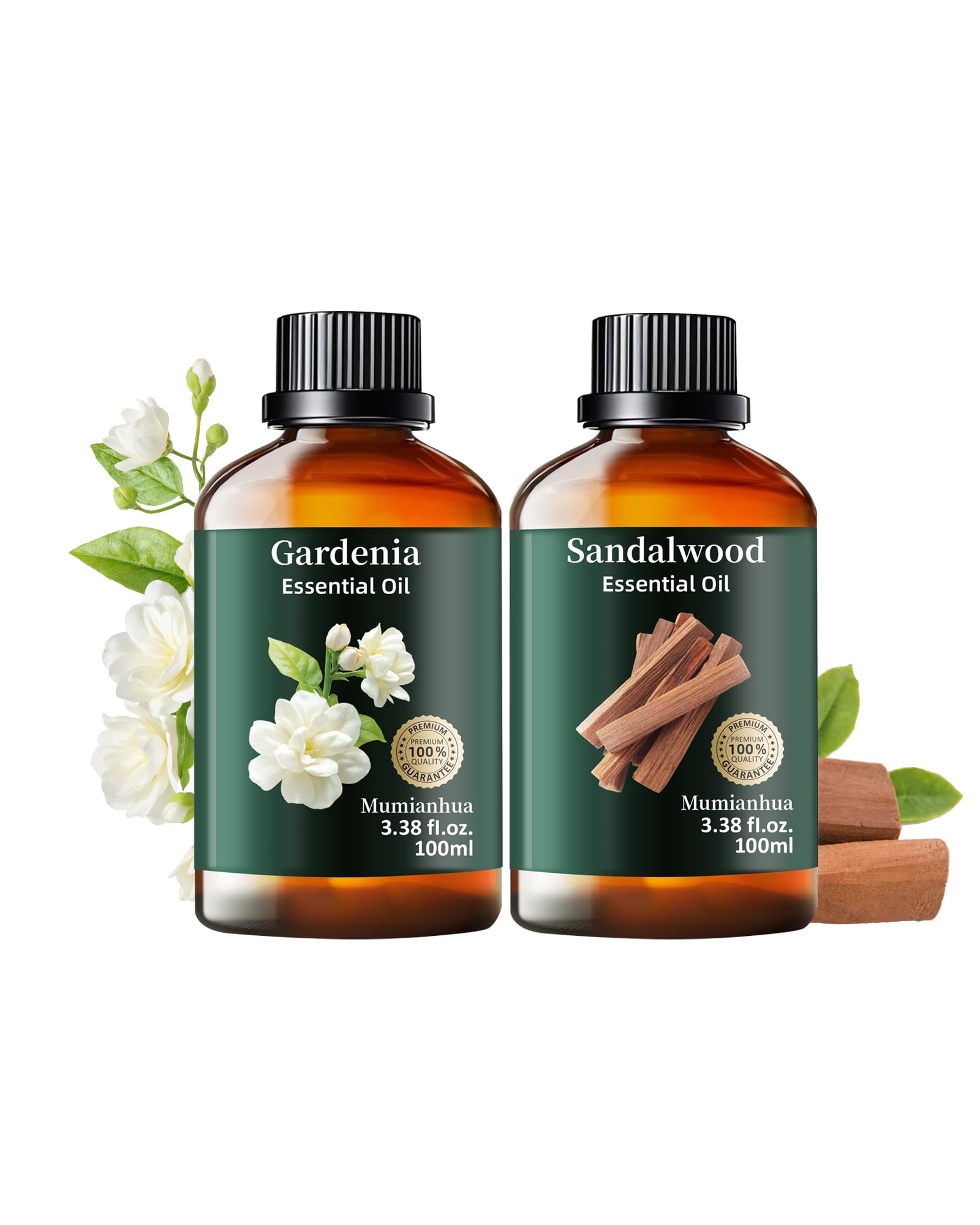 Pure Gardenia & Sandalwood Essential Oil Set Natural Floral Woody Oil Duo for Reed Diffuser Skin Hair Care Perfume Candle Making Evening Relaxation 2 x 3.38 Fl Oz