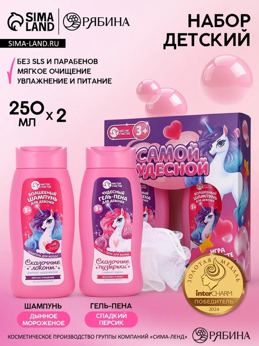 Набор детский "Самой чудесной" включает в себя гель-пену, шампунь и мочалку, оформленные в стильной подарочной коробке. Объем каждого продукта составляет 250 мл, что обеспечивает длительное использование и высокую эффективность. Гель-пена и шампунь нежно очищают и увлажняют кожу и волосы, а их аромат дыньки и персика создаёт приятное чувство свежести. Мочалка в наборе добавляет элементы игрового процесса во время купания. Этот набор идеально подходит для ухода за детской кожей, представляя собой универсальный подарок для любого праздника. Сделано в России с любовью и заботой о самых маленьких.