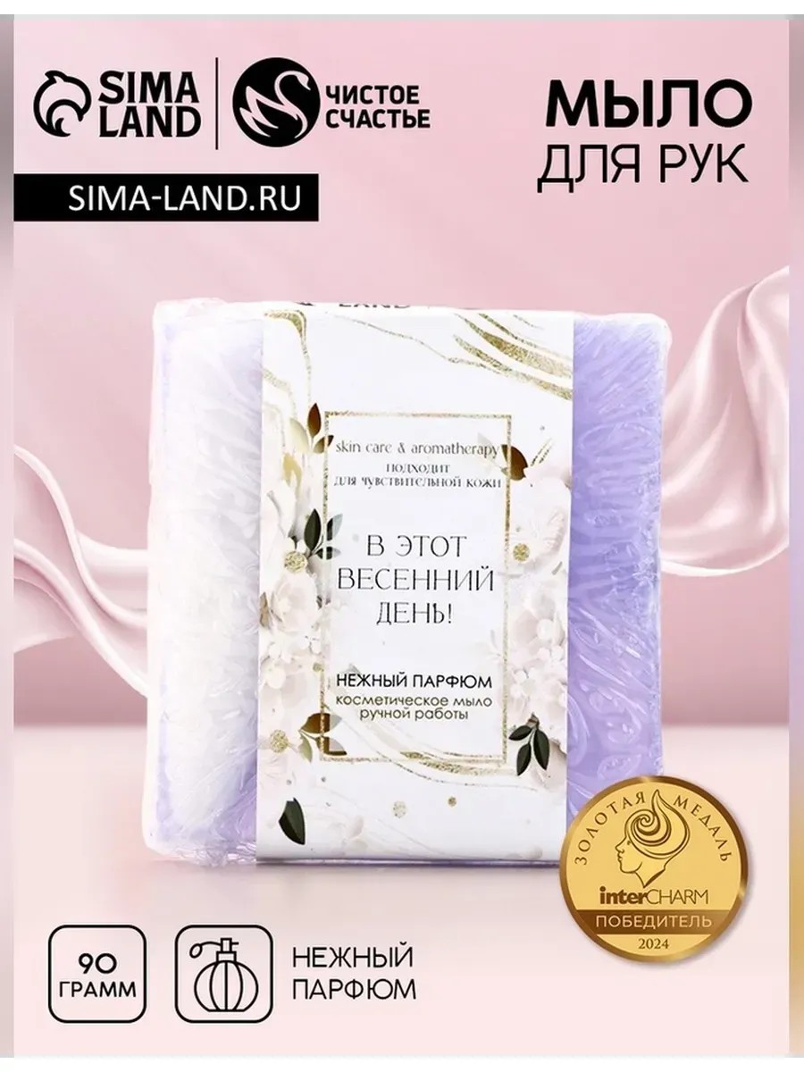 "On This Spring Day" hand soap is the perfect choice for those who value quality and care for their skin. Its 90g capacity and delicate perfume scent will leave you feeling fresh and clean. This cosmetic product is suitable for daily use, providing gentle hand care. Shrink-wrapped packaging ensures its safety and protection from external influences. This product is manufactured in Russia under the "Pure Happiness" brand, renowned for the high quality of its products. The soap has a perfumed scent that will linger on your hands for a long time, giving you confidence and comfort. Suitable for women, it makes a great gift for March 8th or any other holiday. Don't miss the opportunity to treat yourself and your loved ones with this wonderful product, which not only cleanses but also cares for your hands. Order your soap now and enjoy its gentle action!