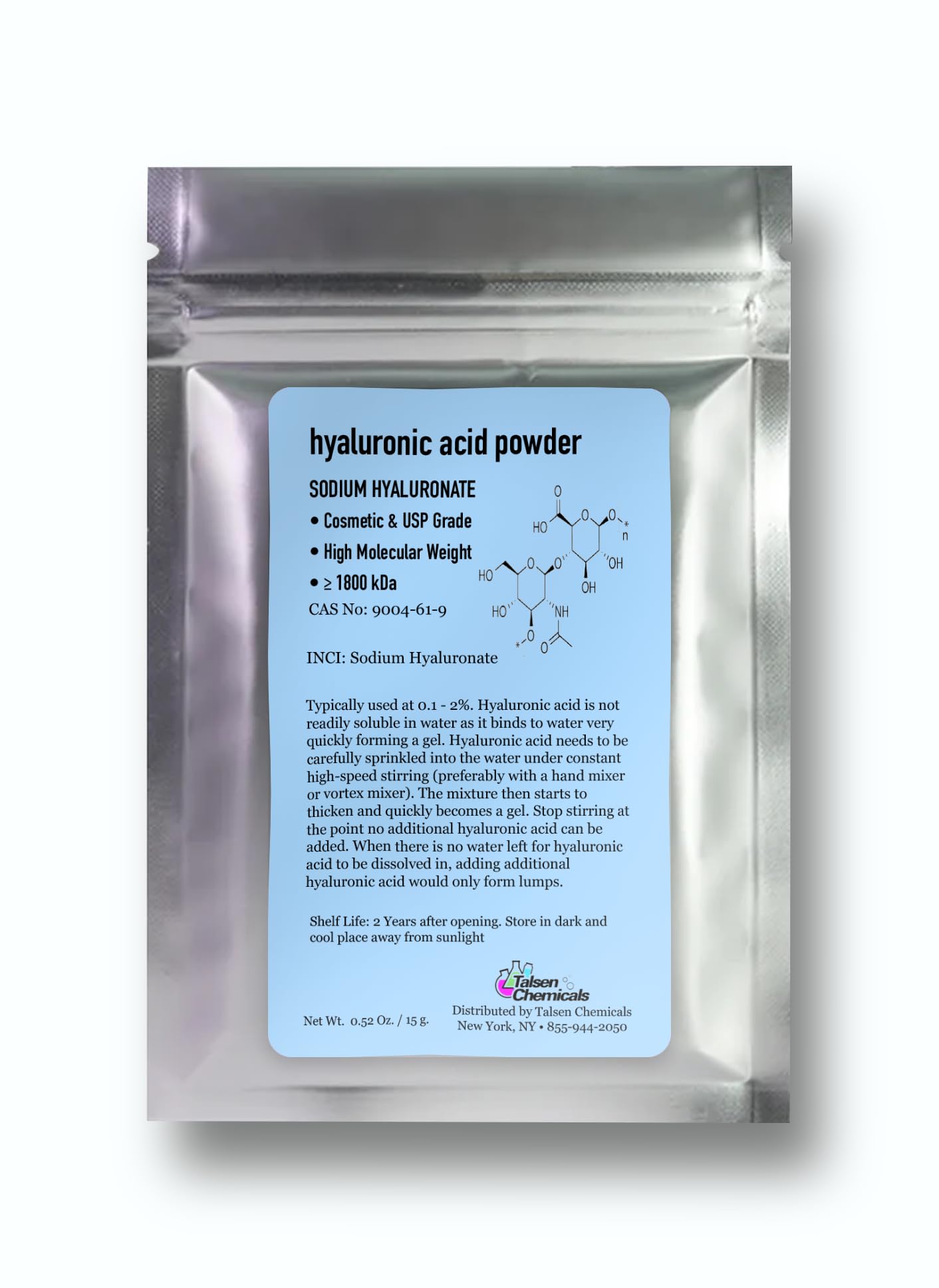 Pure Hyaluronic Acid Powder (0.52 oz. / 15 Grams) 1800 kDa+ for Skin Cosmetic Grade Hyaluronic Acid High Molecular Weight Powder DIY Hyaluronic Acid Serums 0.52 Ounce (15 g)