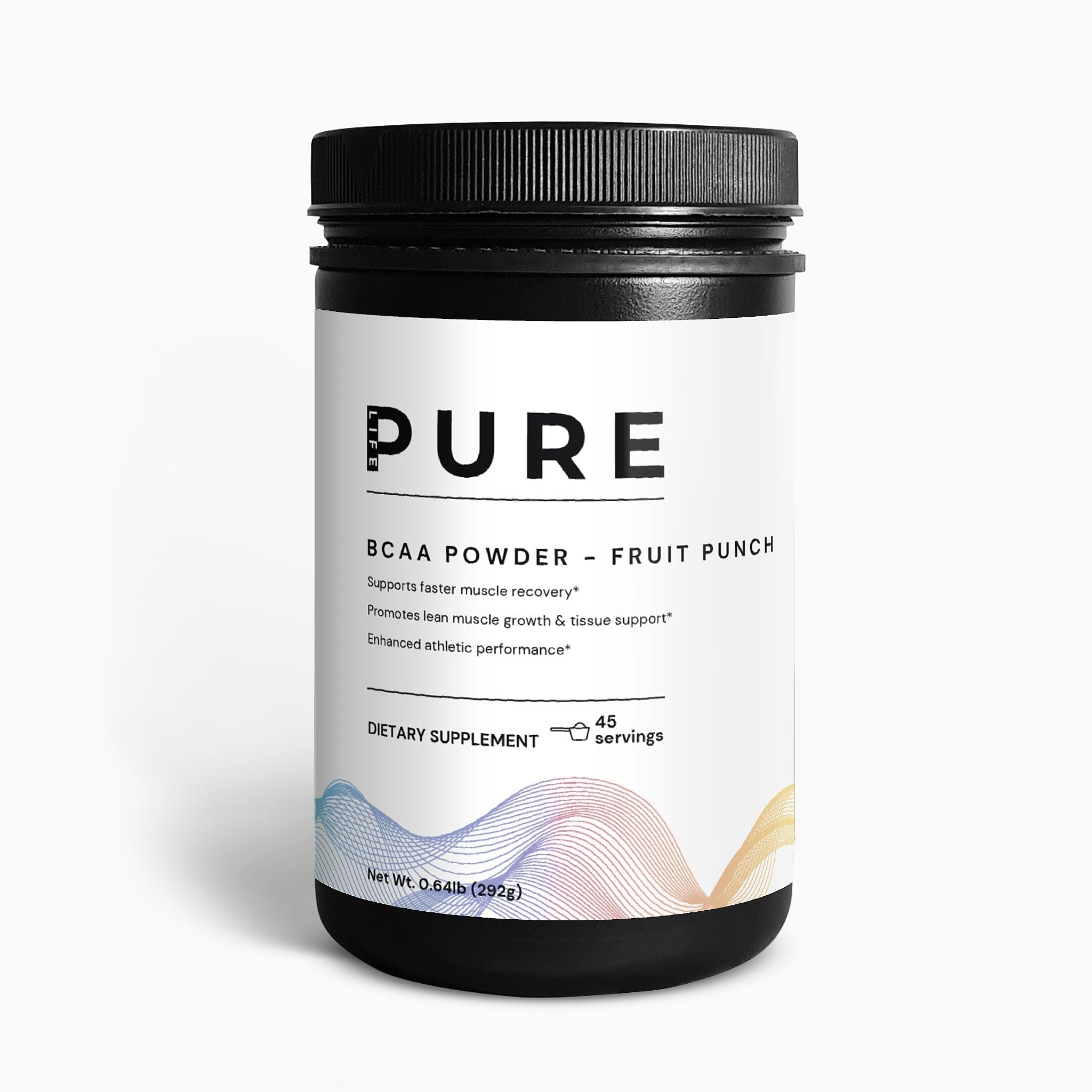 BCAA Post Workout Powder is a blend of 5000mg of branched-chain amino acids and Glutamine for lean muscle and recovery. It contains the ideal ratio of 2 parts Leucine to 1 part Isoleucine and Valine. These amino acids increase protein synthesis and nitrogen retention, both essential to building lean muscle. BCAAs are metabolized directly in the muscle and are considered essential because the body cannot produce them from other compounds. Instead, they must come from diet or supplementation. Ingredients: Vitamin B6 (as Pyridoxine Hydrochloride), L-Glutamine, BCAA 2:1:1, Citric Acid, Fruit Punch flavor, Potassium Citrate, Silicon Dioxide, Sucralose, Sodium Chloride, Acesulfame Potassium, FD C Red 40 Powder. Flavor: Fruit Punch Manufacturer Country: USA Product Amount: 0.64lb (292g) Gross Weight: 1lb (454g) Suggested Use: Mix 1.2 a scoop (6.5g) in 8-10 oz (236-295 ml) of cold beverage. It will take a few minutes for all the powder to dissolve in the beverage. Best taken pre-workout, post-workout, or between meals. Caution: Do not exceed recommended dose. Pregnant or nursing mothers, children under the age of 18, and individuals with a known medical condition should consult a physician before using this or any dietary supplement. Warning: This product is not intended to diagnose, treat, cure or prevent any disease. Keep out of reach of children. Do not use if the safety seal is damaged or missing. Store in a cool, dry place. These statements have not been evaluated by the Food and Drug Administration. This product is not intended to diagnose, treat, cure, or prevent any disease. – : Proudly made in the USA, this bcaa powder container offers 45 servings of clean support. Whether used as a bcaa powder for women or a bcaa powder for men, it's your trusted bcaa protein powder to support fitness goals. Our bcaa flavoured powder in fruit punch taste makes each serving refreshing. It dissolves easily in water and works great as a bcaa pre workout powder or a bcaa recovery powder—your all-day amino acids bcaa powder. : This plant based bcaa powder is designed for those who value clean supplementation. Ideal for both men and women, it's the best bcaa powder for weight loss support, lean muscle gains, and recovery without unwanted fillers. : With a clinically studied 2:1:1 BCAA ratio, this bcaa supplement powder is ideal for muscle repair and growth. It's one of the best bcaa and glutamine powders for maximizing protein synthesis and post workout recovery. : PURE LIFE BCAA powder fruit punch flavor of BCAAs and Glutamine to fuel recovery. This clean bcaa powder boosts endurance, reduces post-exercise fatigue, and supports lean muscle for men and women.