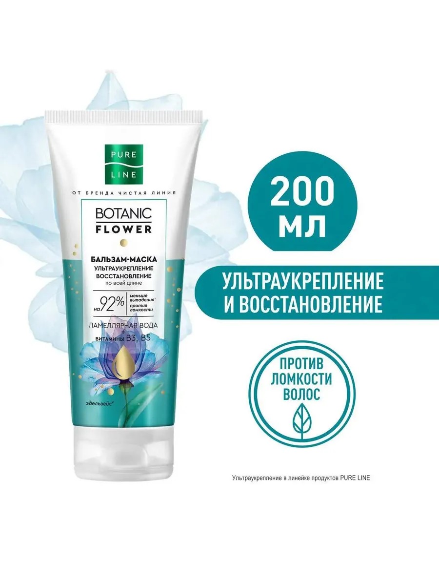 Специально для сильных и ухоженных волос эксперты бренда Чистая Линия разработали линейку Ультраукрепление Pure Line. Добавьте в свой ежедневный уход бальзам-маску Ультраукрепление и вы почувствуете, как волосы преображаются. Формула продукта усилена витаминами В3, B5 для восстановления и защиты от ломкости по все длине. Ламеллярная вода дает сияние и упругость без утяжеления. Инновационная формула одобрена экспертами.’’ Продукт может быть использован как бальзам и как маска. Не утяжеляет волосы и подходит для ежедневного применения.