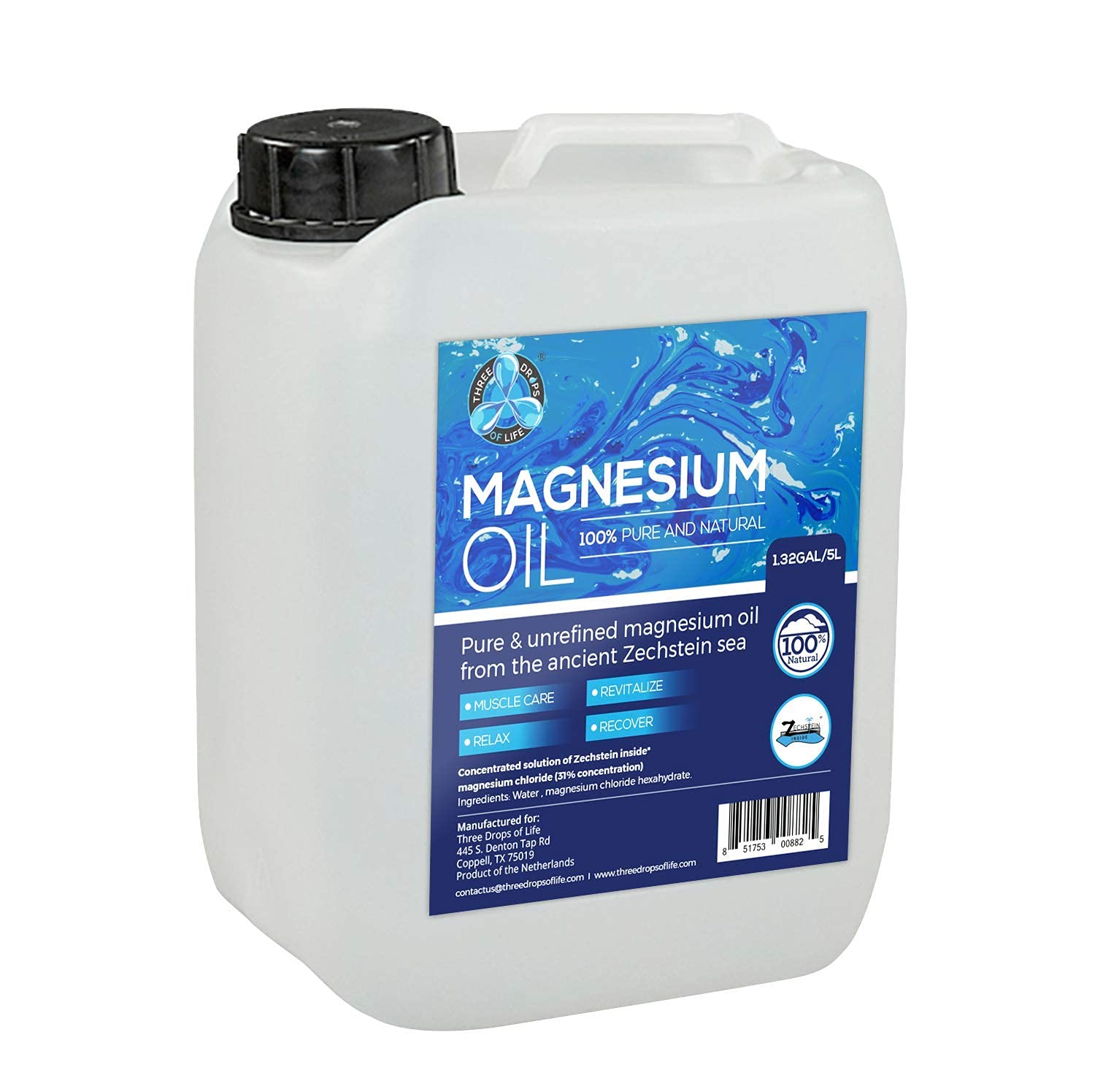 Pure Magnesium Oil Bulk Topical Magnesium Chloride Directly from Zechstein Sea Official Distributor of Zechstein Inside (1.32Gal/5L) 169 FL OZ (Pack of 1)