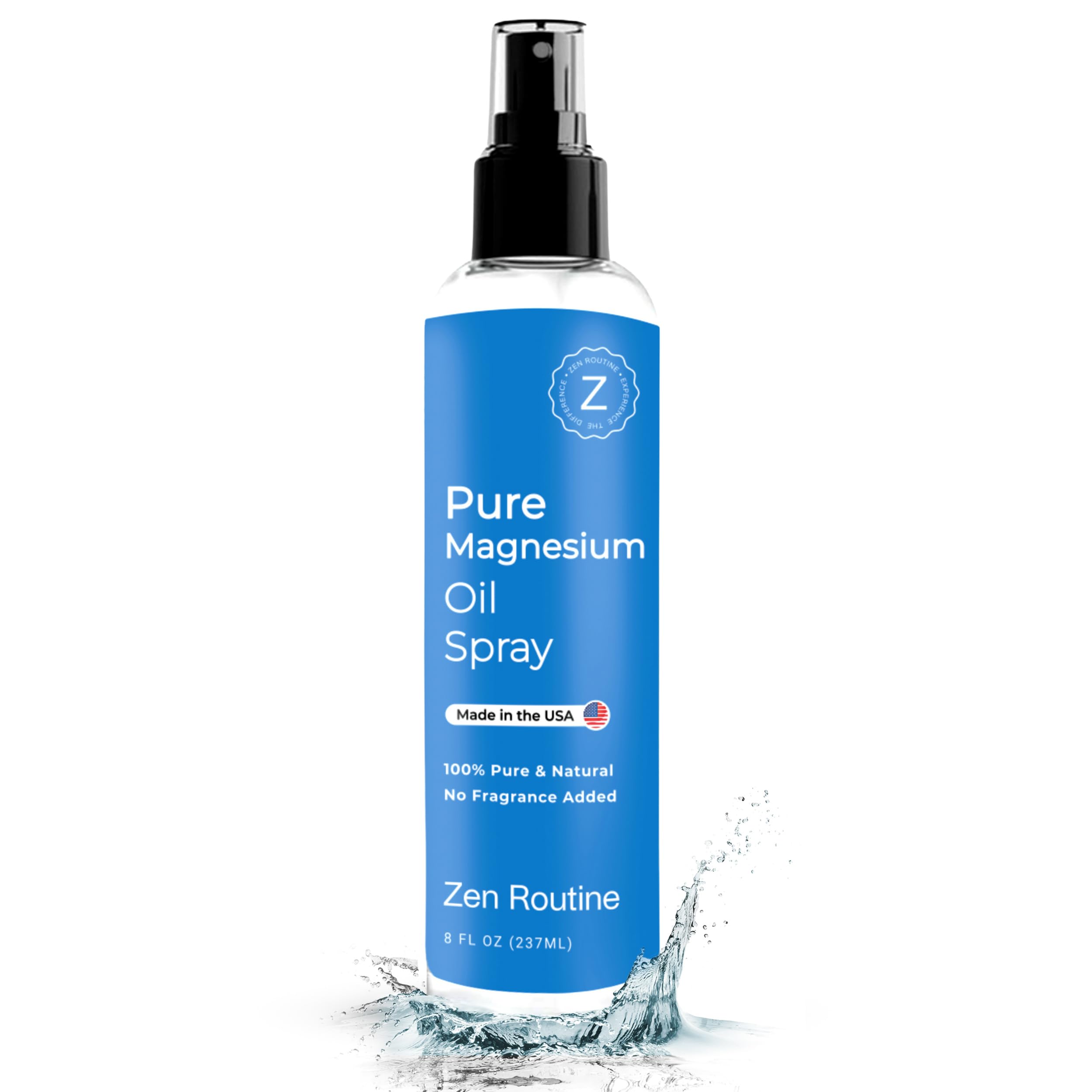 Pure Magnesium Oil Spray 8oz (Single) USP Grade Topical for Feet, Body, Muscles, Leg Cramps & Sleep Extra Strength, Less Sting 100% Organic & Natural Made in USA 8 Fl oz 1-Pack