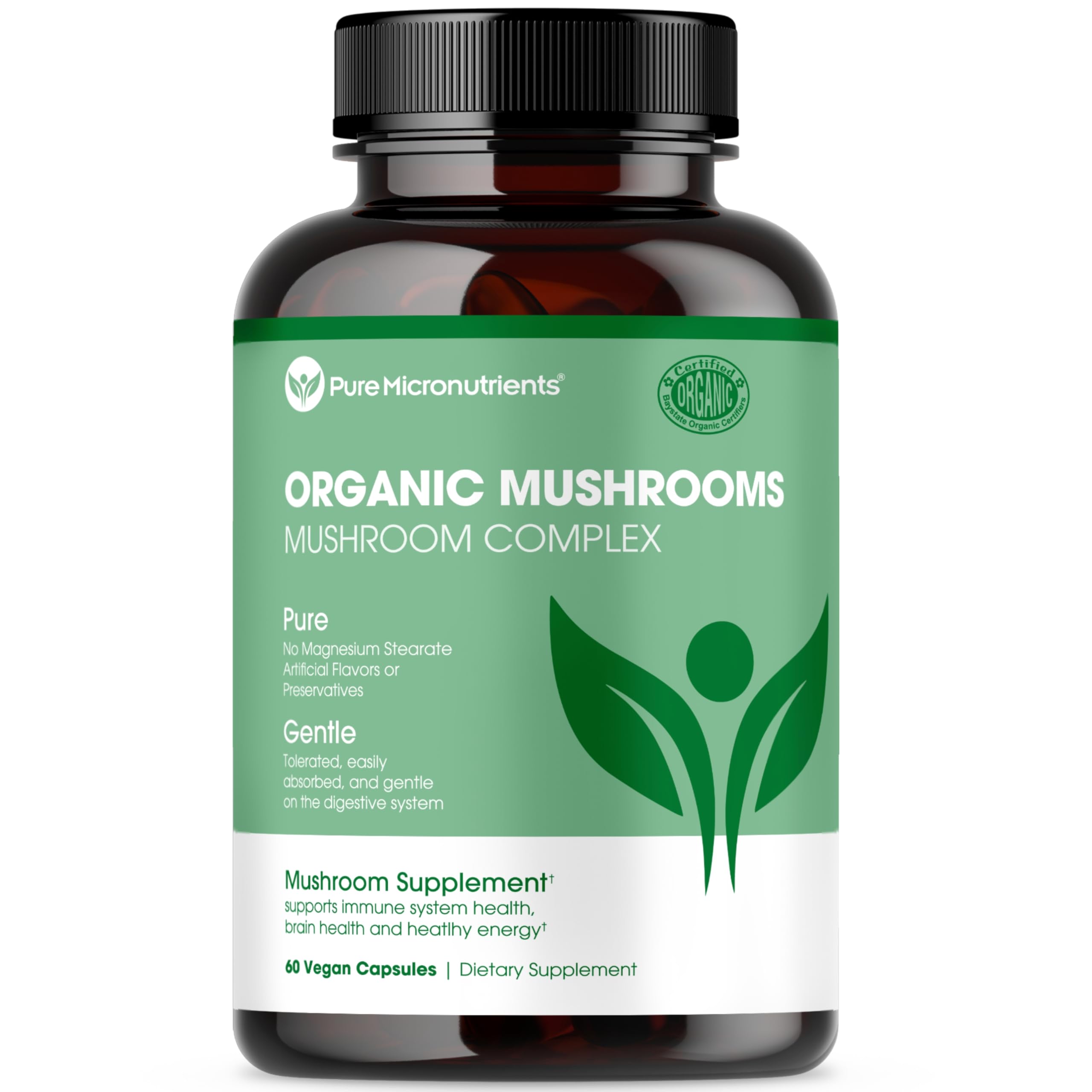 Pure Micronutrients Organic Mushroom Supplement - Lions Mane, Reishi, Chaga, Cordyceps & Turkey Tail Complex - Immune Support, Nootropic Brain Memory, Focus & Energy Pills - 60 Vegan, USA Grown 1