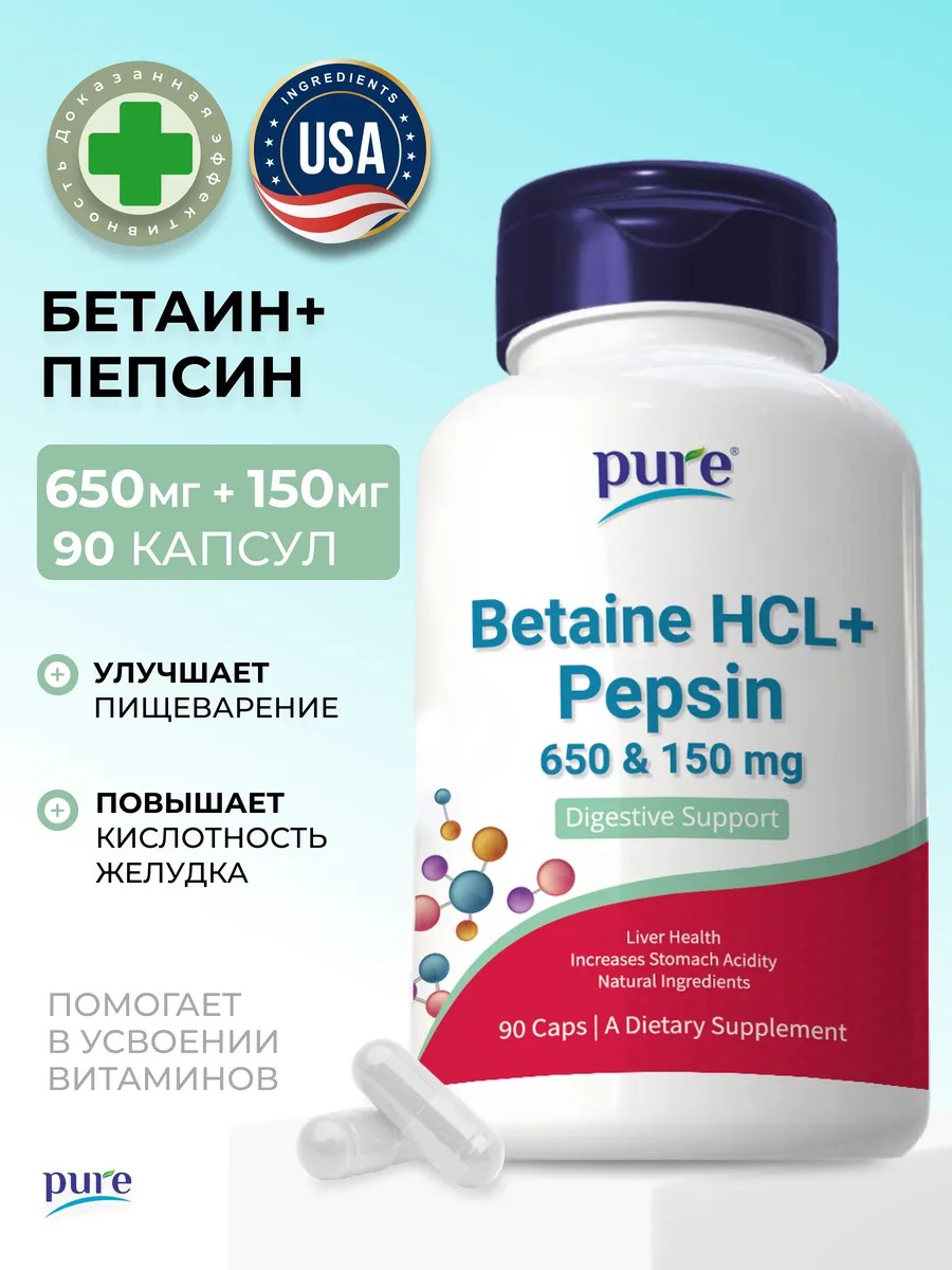 Бетаин с пепсином — это высокоэффективная биологически активная добавка (БАД), сочетающая в себе мощные свойства бетаина (betaine) и пепсина (pepsin).