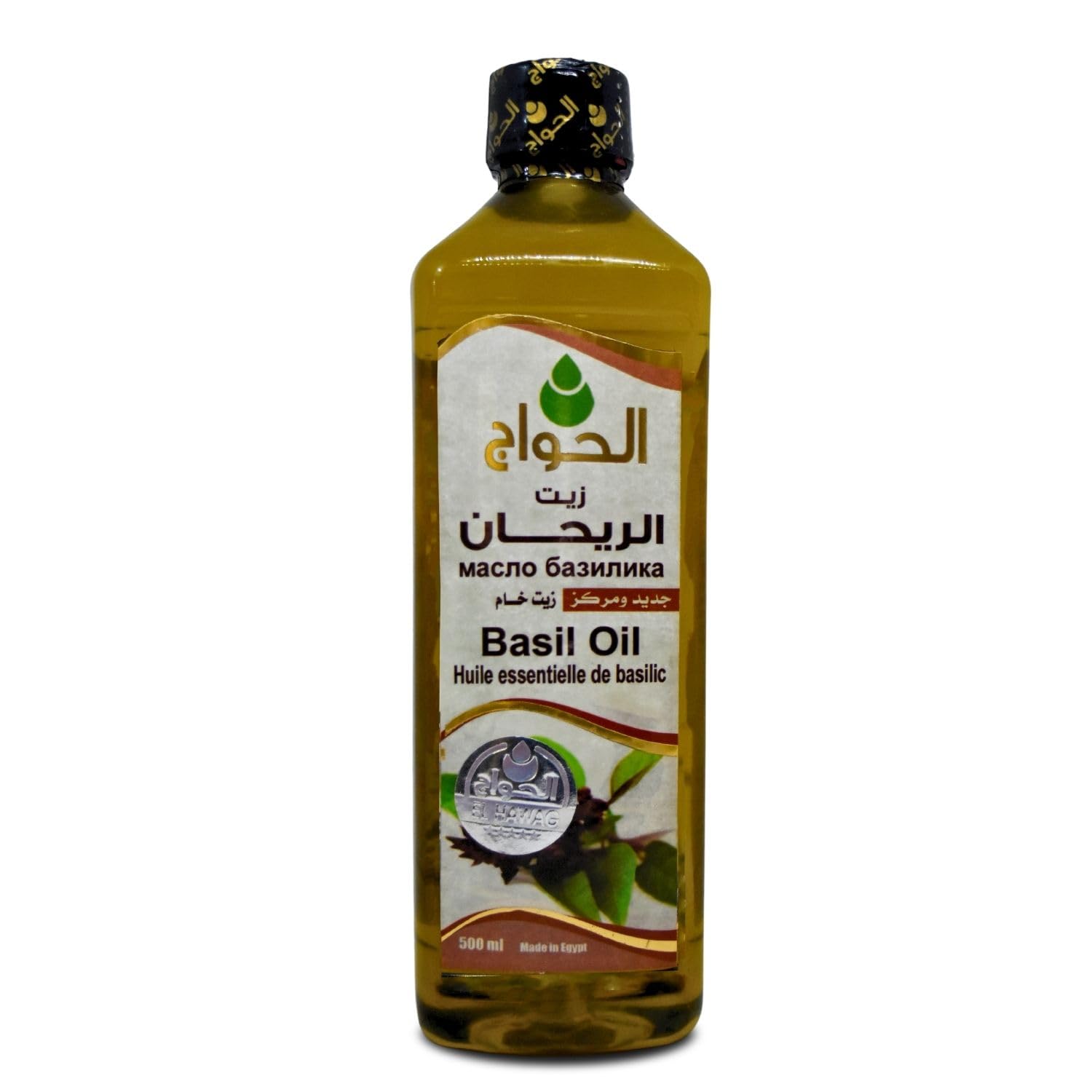 Item Description : Pure Natural Basil Oil Al Hawaj Elhawag El Hawag Cold Pressed Concentrated Crude Perfect Rich Fresh Herbal Herbals Herb Herbs No Additives For Skin Body Hair ( 1 Pack 17.64 oz 500 ml ) ? ? Benefits Of Basil Oil : For Beautiful Hair . - Use Of Body : Take A Teaspoon Of Oil On A Quarter Cup Of Water . And Use Of Hair : Apply An Appropriate Amount To The Desired Area Gently . Multi Usage : Basil Oil Suitable For All Skin . Basil Oil Extraction : Steam Distillation - Made In Egypt - 100 Pure And All Natural , Providing You With The Finest Of Nature's Great To Ensure All Natural Oils .
