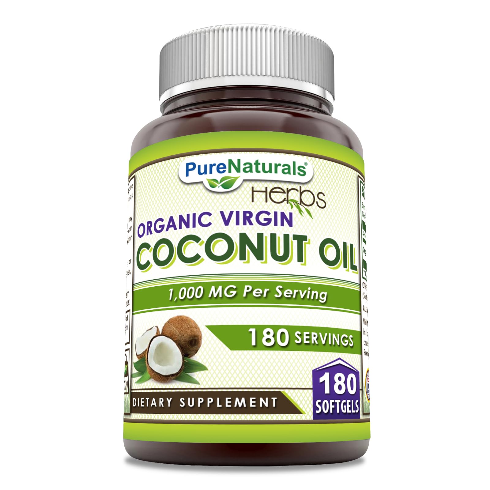 Organic Virgin Coconut Oil 1000 Mg per Serving Supplement 180 Servings per Bottle, 1 Softgel per Serving Non-GMO, Gluten Free, Third Party Tested Manufactured in accordance with GMP Standards Proudly made in the USA with Guaranteed Purity Potency