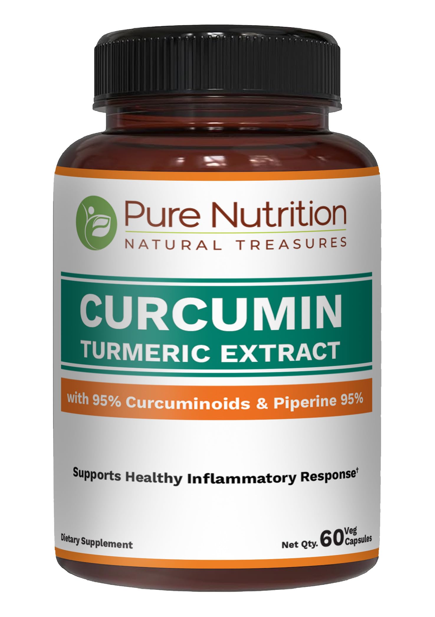 Pure Nutrition Curcumin Turmeric Supplement 95% Curcuminoids & Piperine 95% | Supports Inflammation Response| Non-GMO | 60 Veg Capsules