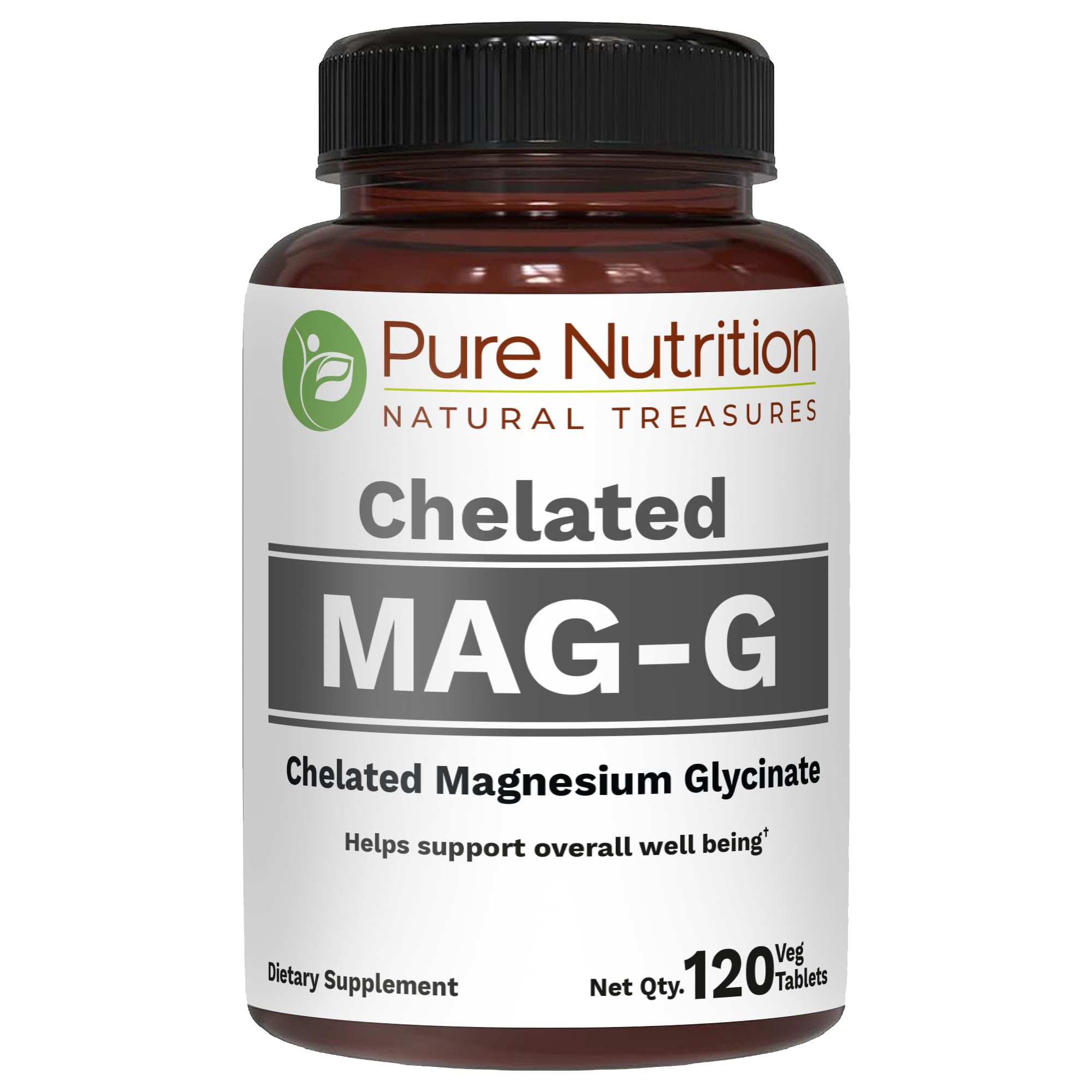 Pure Nutrition MagG - Chelated Magnesium glycinate Supplement | 120 Tabs | 440mg Elemental Magnesium | High Absorption Magnesium Supplement to Support Overall Well Being