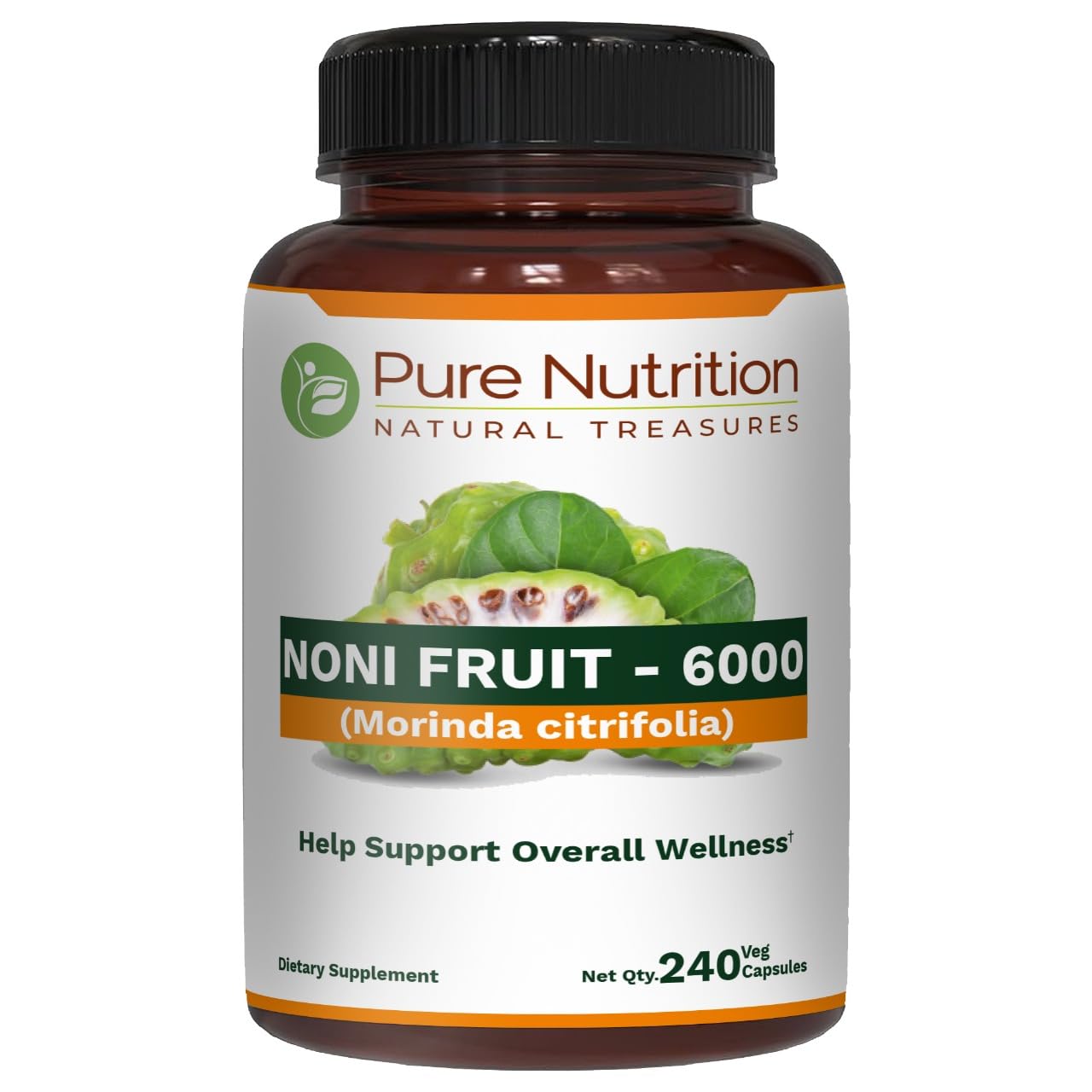 "Pure Nutrition Guarantee - If for any reason you're not satisfied with one of our products, we will gladly accept returns for a full product refund. ". At Pure Nutrition,we prioritize exceptional quality. Our Noni fruit extract is carefully formulated with premium ingredients rigorously tested for purity, potency, safety, ensuring your health. Non GMO I Gluten free I Dairy free I GMP Certified 240 Caps Pack. Packed with naturally occurring antioxidants and nutrients, Noni extract is a plant-based option for those looking to support their overall wellness. Rich in naturally occurring nutrients, Noni extract is commonly included in supplement routines focused on maintaining a balanced and comfortable digestive system. Noni fruit extract is known for its nourishing properties and has been traditionally used as part of wellness routines that support the body's natural balance and overall well-being. Powerful 6000mg Formula - Pure Nutrition Noni fruit extract offers 300mg of 20:1 ratio Noni fruit Extract equivalent to 6,000mg Noni fruit with black pepper extract.