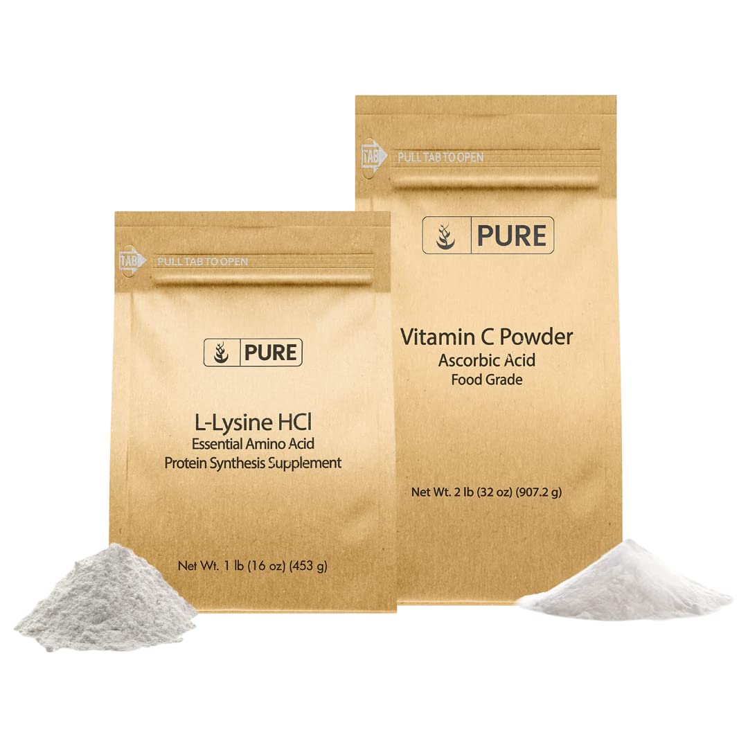 PURE ORIGINAL INGREDIENTS Vitamin C and L-Lysine HCL Bundle Dietary Supplement Non-GMO