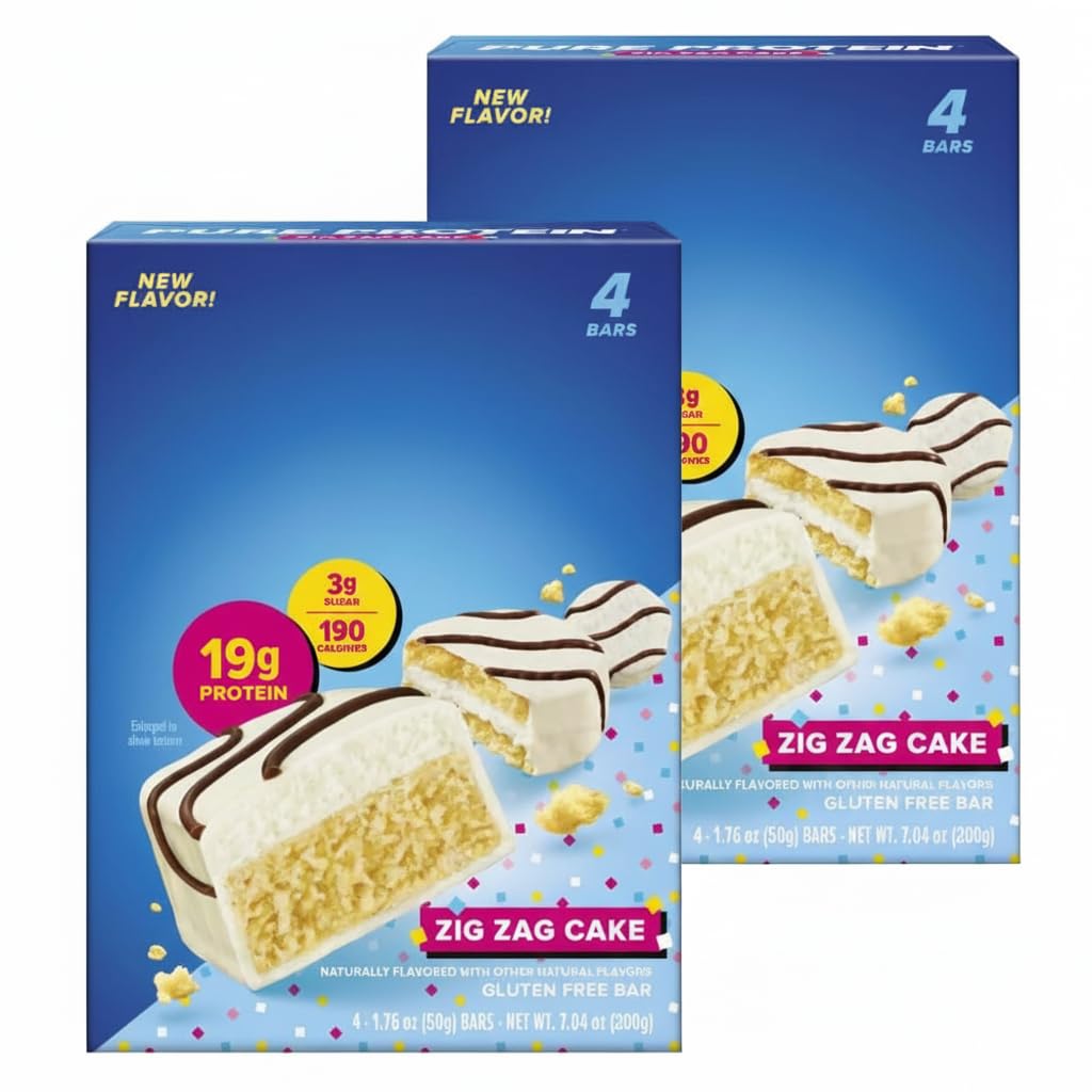 Pure Protean Zig Zag Cake Protein Bars Vanilla Cake with Milk Chocolate Frosting 19g Protein Gluten Free Low Sugar 1.76 oz (2 Pack of 4 Bars)