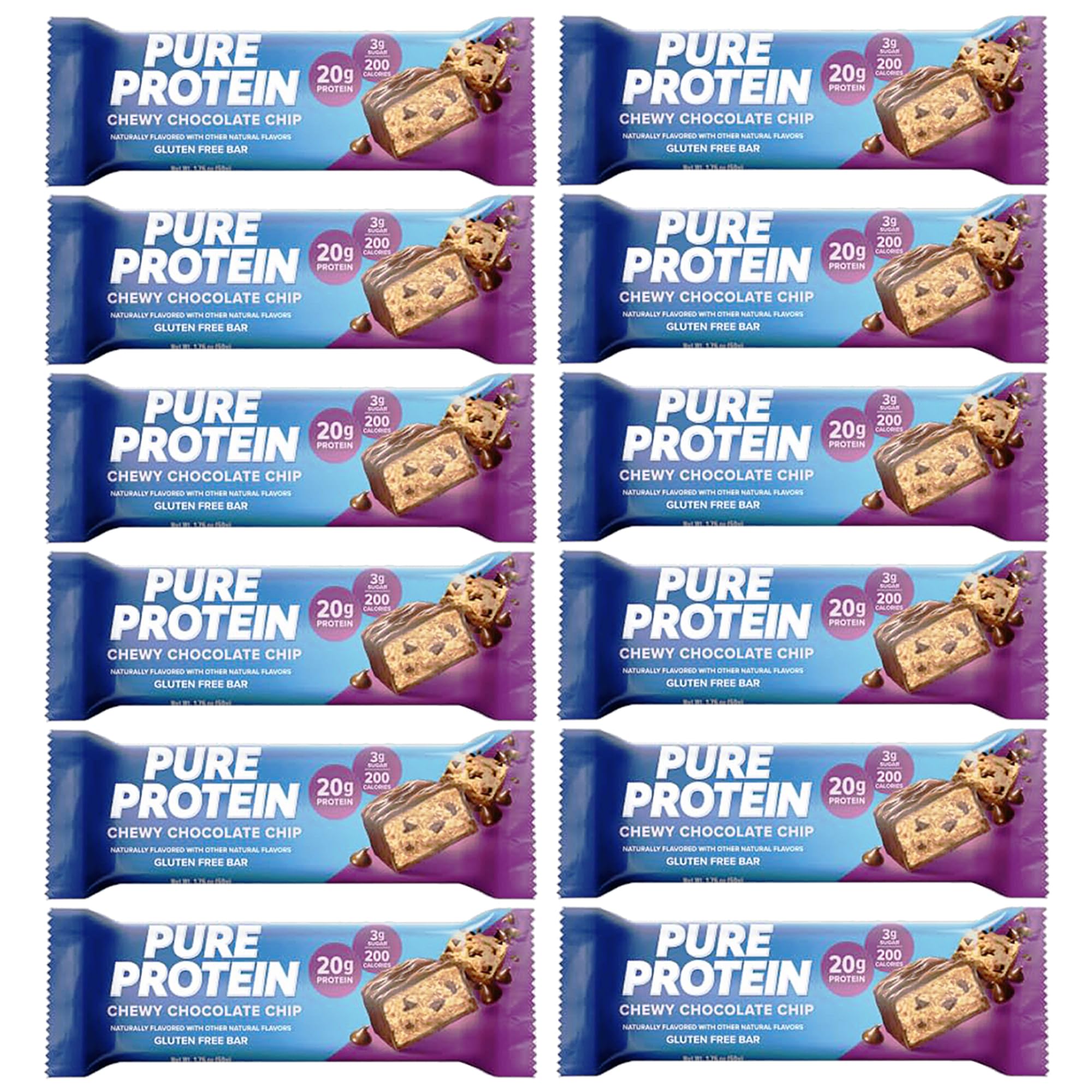 Pure Protein Bars High Protein Nutritious Snacks to Support Energy Low Sugar 1.75 oz Gluten Free 12 Count Chewy Chocolate Chip