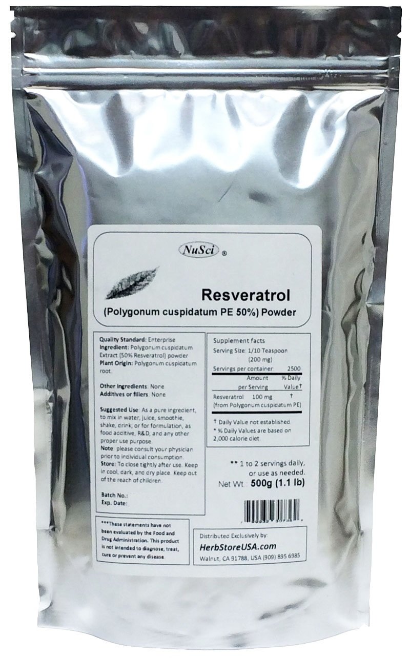 Pure Resveratrol Powder Standardized 50% Extracted from Polygonum Cuspidatum Root (500 Grams (1.1 lb)) 1.1 Pound (Pack of 1)