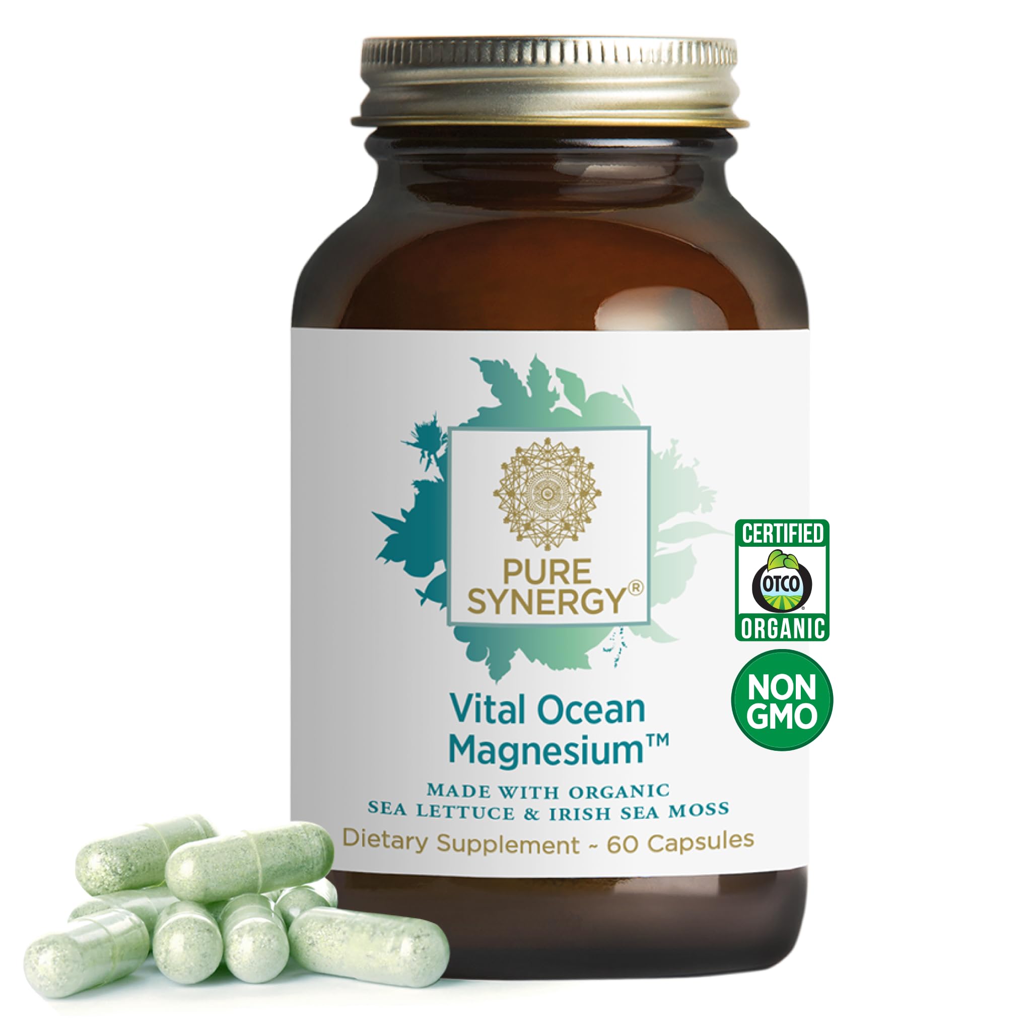 PURE SYNERGY Vital Ocean Magnesium | Organic Magnesium Supplement Capsules | Vegan Seaweed-Based Complex with Spirulina Chlorella & Wakame | for Energy Sleep & Stress (60 Capsules)