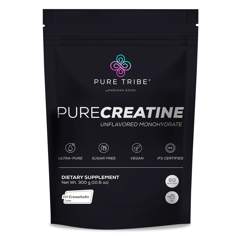DEVELOPED IN GERMANY, BACKED BY SCIENCE: Backed by years of research, Pure Creatine powder for women and men is a premium, well-researched creatine micronized supplement safe and effective for anyone looking to elevate their fitness routine. PURE, CLEAN UNFLAVORED FORMULA: Formulated without any artificial fillers, sugar, and additives, this vegan raw creatine monohydrate is made with Creavitalis creatine monohydrate perfect for mixing with other supplements or shakes. MICRONIZED FOR EASY DIGESTION: Easily dissolves in water or your favorite beverage without the grit formulated for maximum absorption, this micronized creatine powder is easy on your stomach. SUPPORT LEAN MUSCLE RECOVERY: This creatine powder for men and women enhances muscle growth and reduces post-workout soreness pure creatine monohydrate supports faster recovery with no bloating, helping you maintain your fitness goals effortlessly. BOOST ENERGY FOCUS: Get a clean energy boost for workouts and daily activity with Pure Tribe PureCreatine monohydrate creatine powder this creatine supplement helps you stay focused without jitters or side effects made for both men and women to optimize performance.