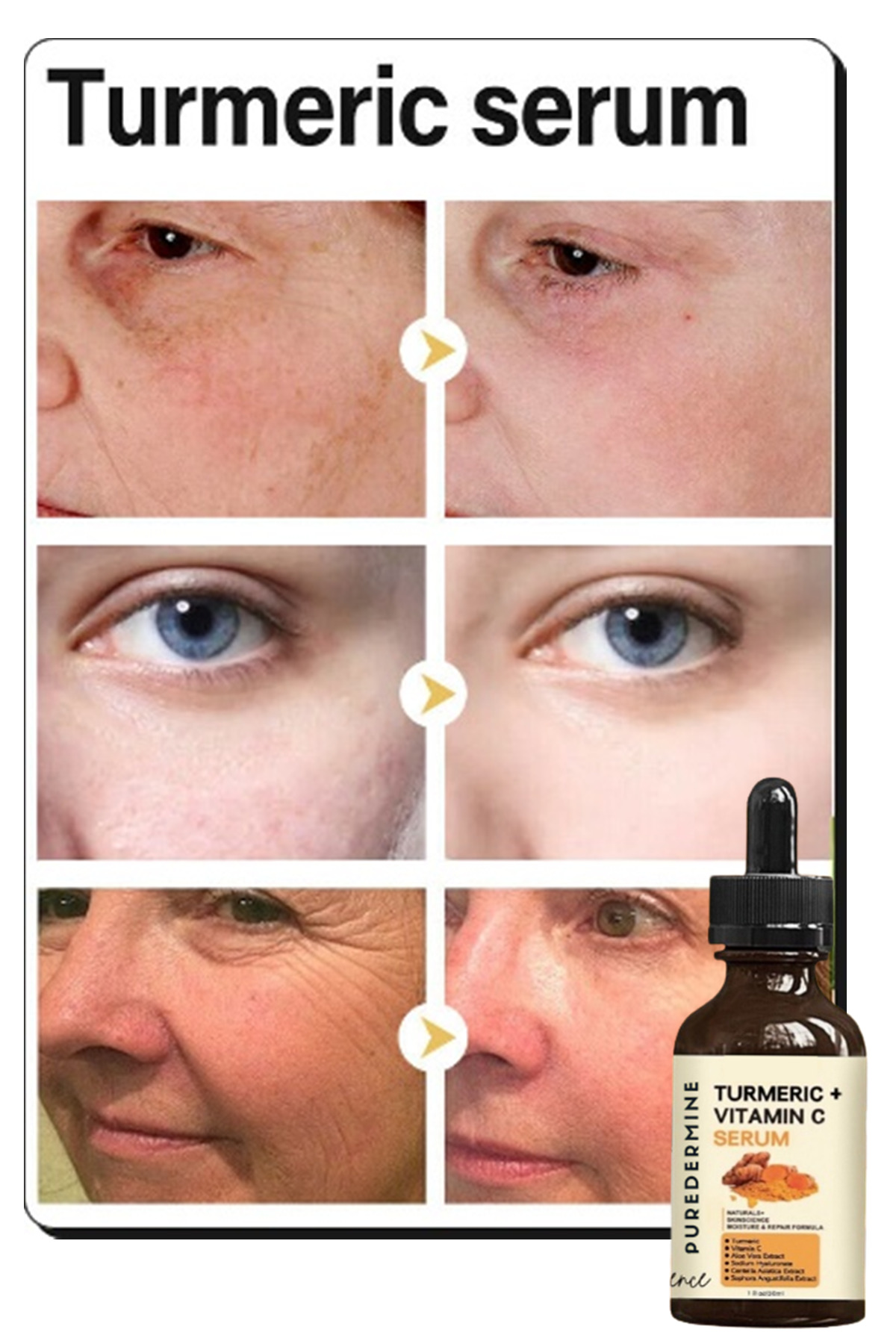 Puredermine Powerful Whitening Turmeric Serum Dark Spots & Acne & Melasma & Dark Joints & Fingers Knees & Elbows