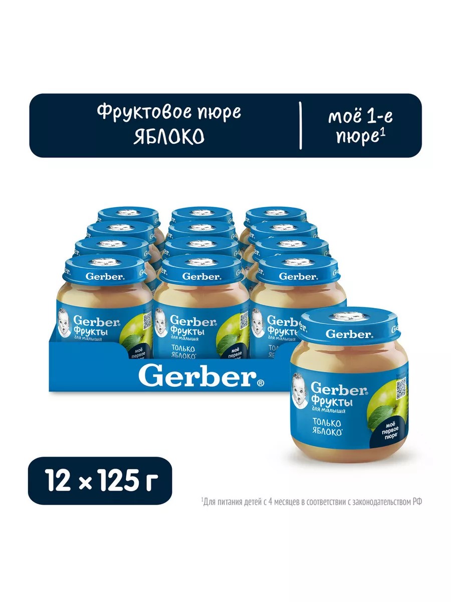Gerber (Гербер) Фруктовое пюре из яблока 125 г. для питания детей старше 4 месяцев согласно законодательству РФ.