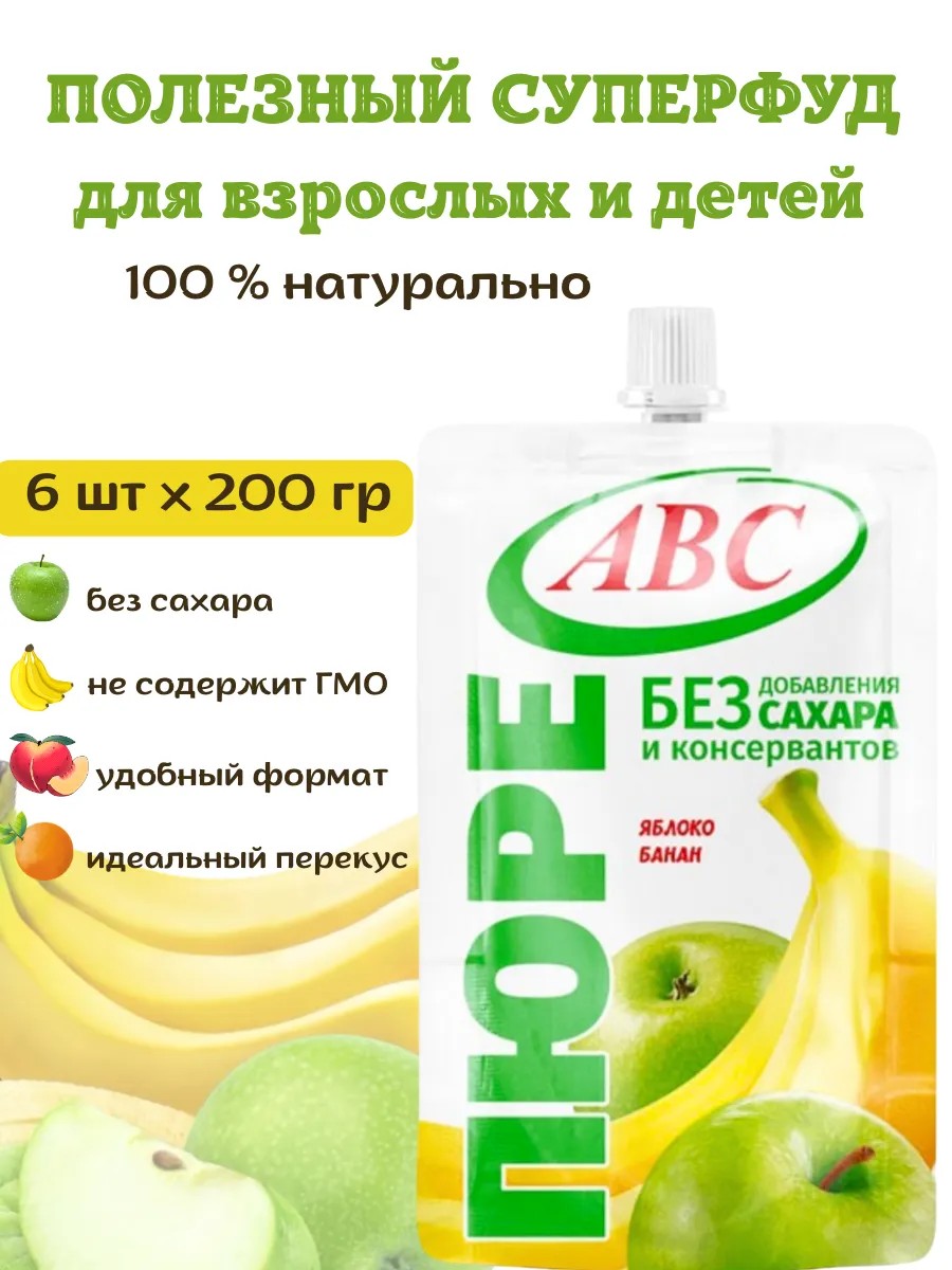 Пюре фруктовое из протертых яблок с бананом - это вкусный и полезный перекус для всей семьи. Отлично подходит как перекус или собойка для детей в школу . Изготовленное из спелых фруктов, пюре не содержит консервантов, красителей и ароматизаторов. Удобная упаковка объемом 200 грамм идеально подходит для завтрака, перекуса или десерта. Пюре богато витаминами и минералами, которые необходимы для поддержания здоровья и хорошего самочувствия. Без сахара в составе , подходит для детского питания. Суперфуд для правильного питания , подходит тем , кто следит за фигурой , а также идеальный вариант быстрого перекуса для спортсменов , детей , бабушек и дедушек . Можно употреблять как дополнение к завтраку , обеду или полднику , а также добавлять к блинчикам , в выпечку и другие блюда .