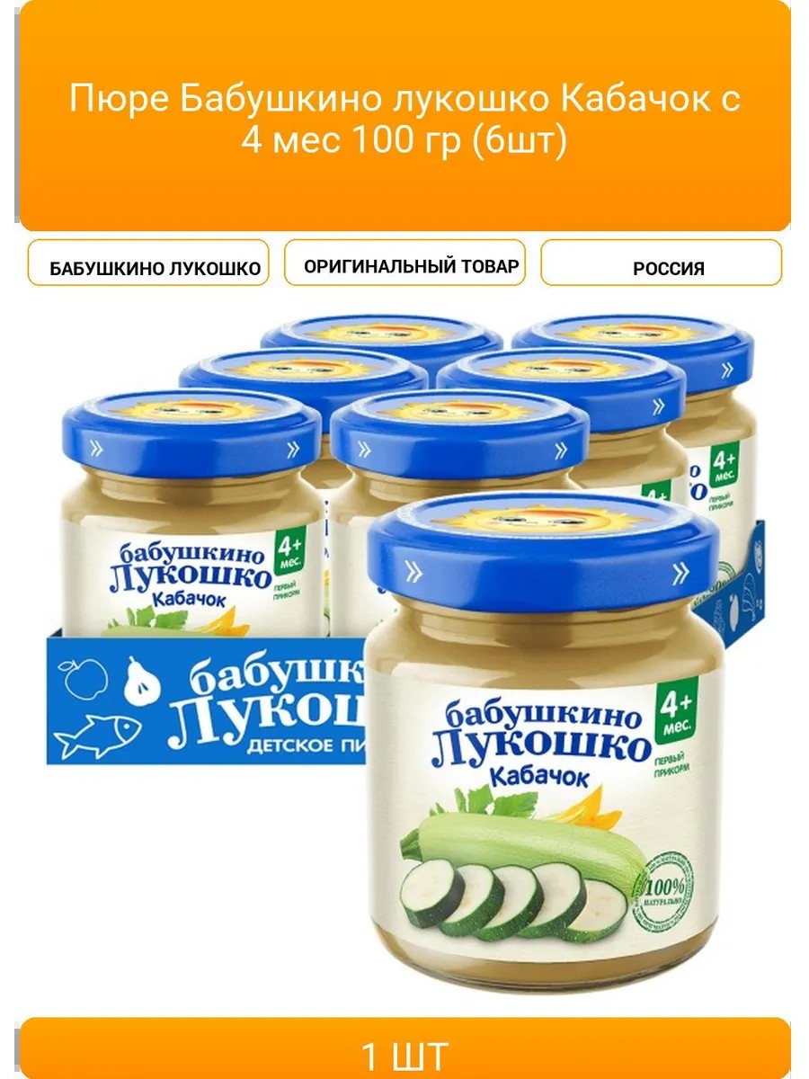 | Комплектация | Пюре Бабушкино лукошко Кабачок с 4 мес 100 гр (6шт) |