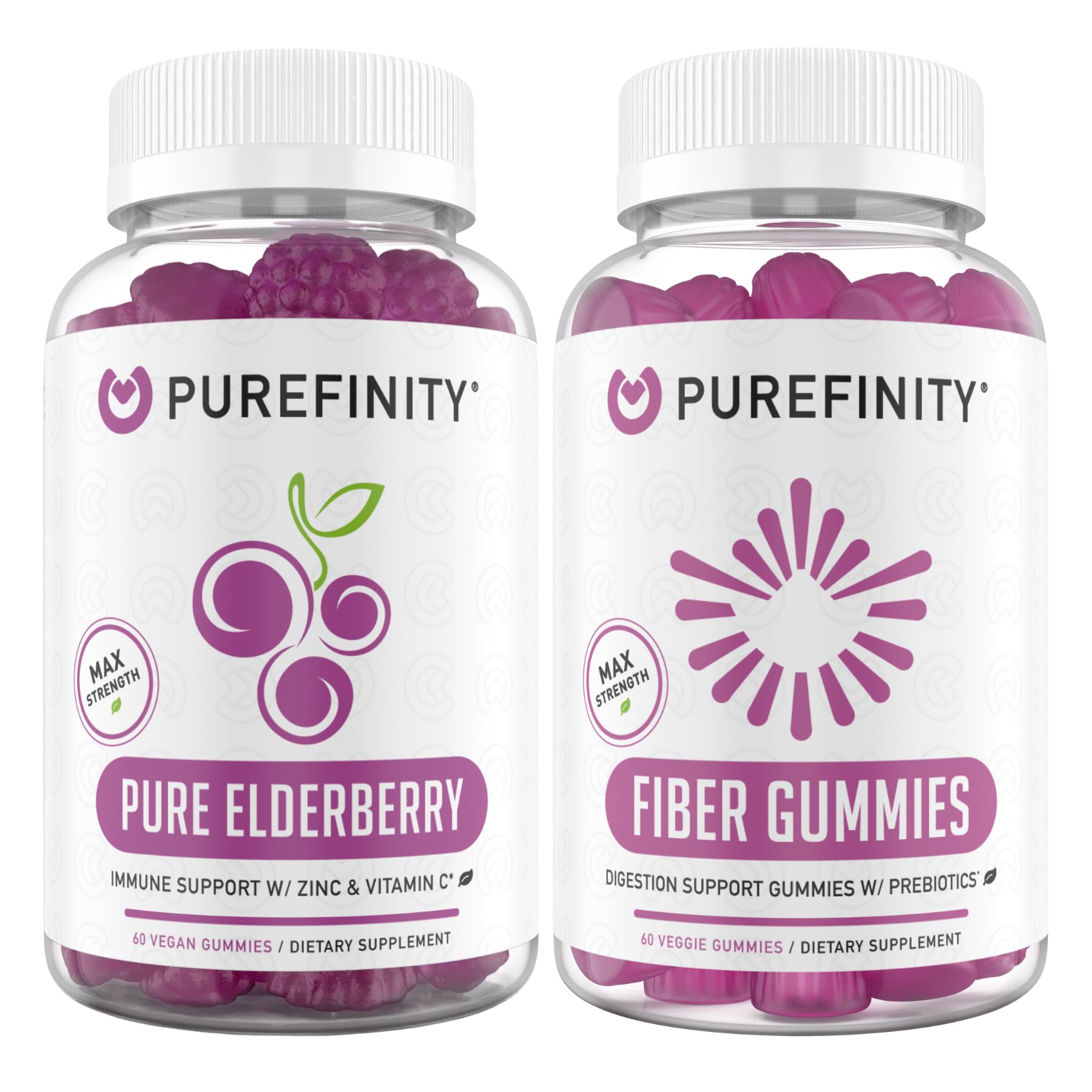 PUREFINITY Fiber + Elderberry Gummies Bundle (Inulin FOS Prebiotic Fiber Gummies + Double Strength Elderberry Gummies with Zinc & Vitamin C)