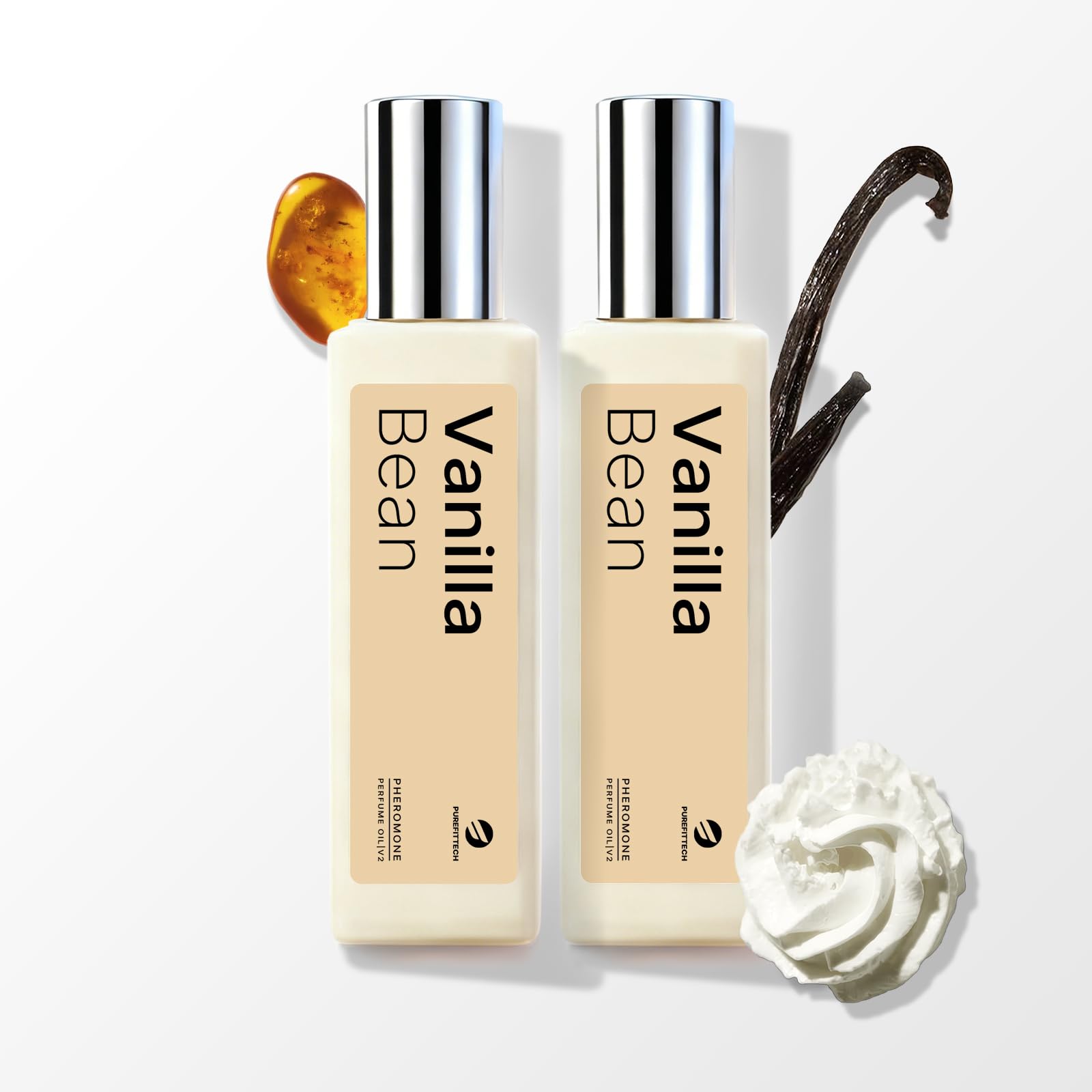 PUREFITTECH Pheromones Perfume Oil for Women Vanilla Bean Fragrance Roll-on Long Lasting Pheromone Perfume Oil 0.68 fl oz (2 * 10ml) Travel Size Pure Essential Oil Parfum Made in USA Vanilla Bean-2 PACK