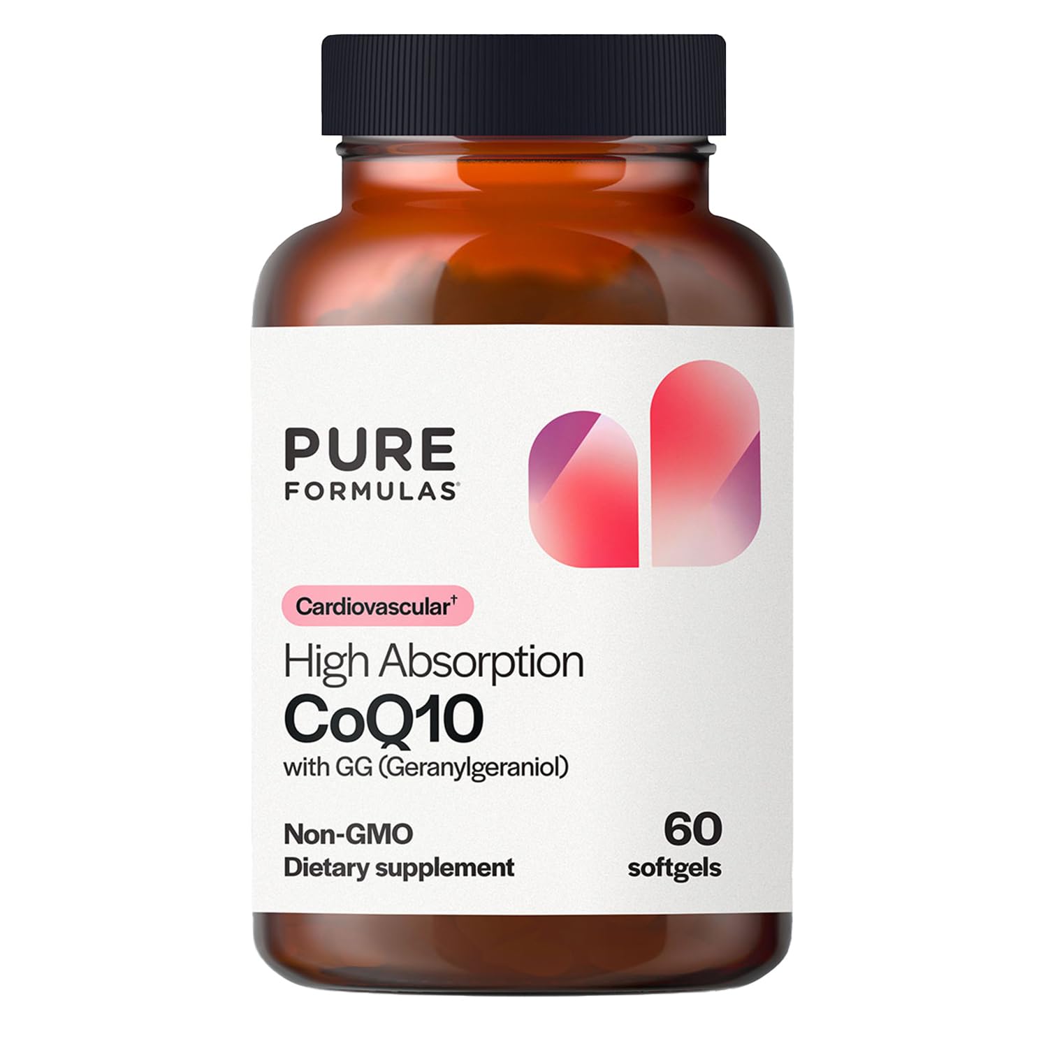 PureFormulas CoQ10 Supplement for Heart Health, Enhanced Absorption with Geranylgeraniol (gg-Gold), Dairy-Free, Gluten-Free, Non-GMO, Supports Cellular Energy & Mitochondrial Function, 60 Softgels