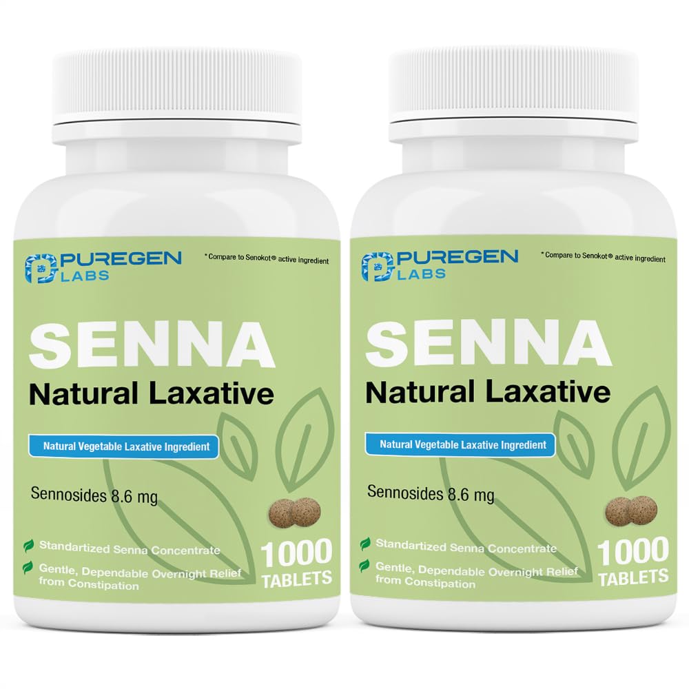 ✓ SUGGESTED USE: For best results take tablets as directed in the evening before bedtime. Usually produces a bowel movement in 6-12 hours. ✓ VALUE PACK SAVINGS: Puregen Labs Senna contains 1000 tablets made from premium ingredients for a fraction of the cost. ✓ FAST AND EFFECTIVE: Puregen Labs Senna usually produces a bowel movement in 6-12 hours. For best results take tablets as directed in the evening before bedtime. ✓ CONSTIPATION, GAS and BLOATING RELIEF: Sennosides 8.6mg tablet works by stimulating the lining of the bowel therefore causing a laxative effect. Senna laxative can help reduce symptoms of constipation, gas and bloating by causing a movement of your colon and intestines to naturally eliminate gasses and waste. ✓ NATURAL ACTIVE INGREDIENT: Sennosides, a natural vegetable laxative derived from Senna plant. It helps relieve constipation and stimulate bowel movement so that you can pass your stool more comfortably. Compare to the active ingredient of major Brands.