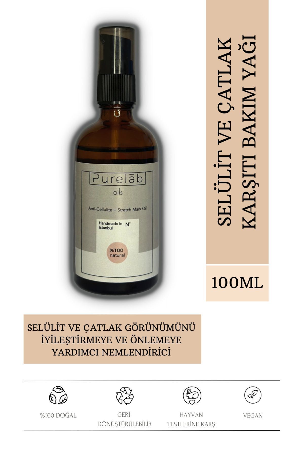 Purelab Oils Cellulite and Stretch Mark Care Oil 100 ml Cellulite and Stretch Mark Preventive Vegan Body Moisturizer