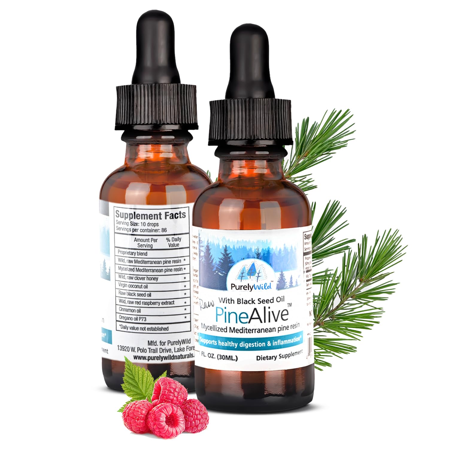 PURELY WILD PineAlive - Raw Pine Resin & Black Seed Oil Complex | Wild-Harvested Forest Extract | Dr. Cass Ingram's Original Formula | 1 fl oz with Dropper