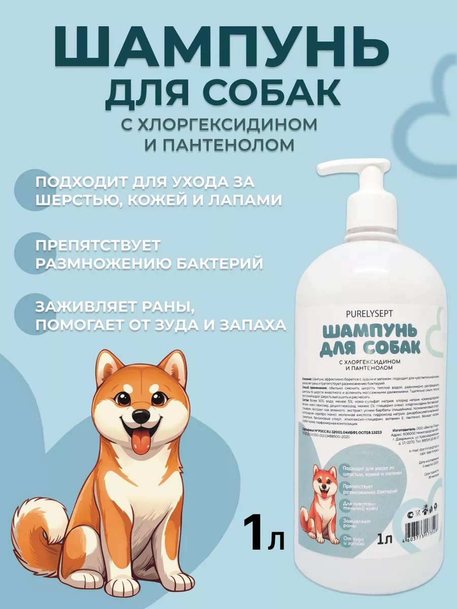 Purelysept Шампунь для собак, с хлоргексидином и пантенолом, 1000мл