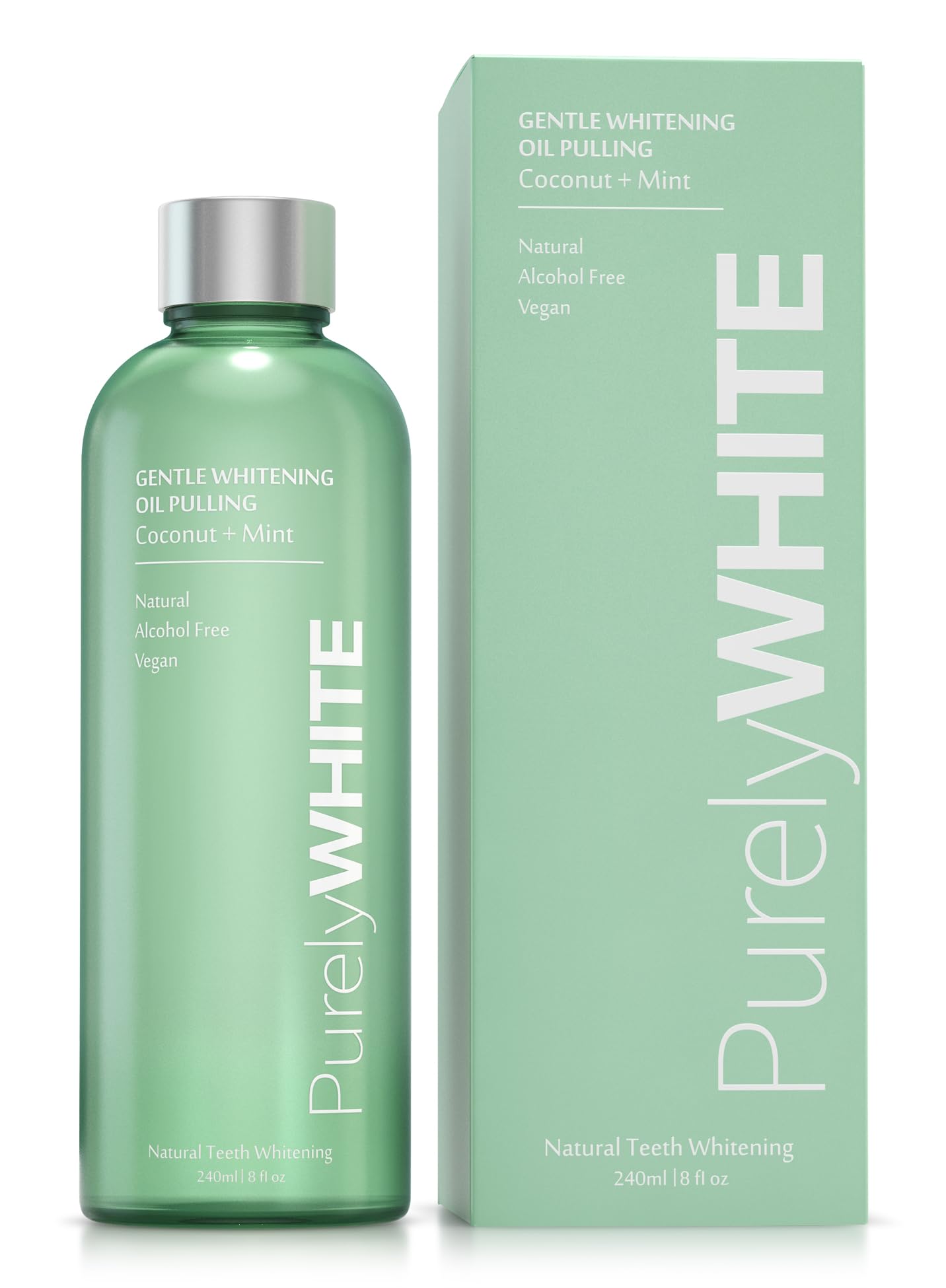 PurelyWHITE Coconut Pulling Oil - Mouthwash Mint Oil Pulling Coconut Oil Pulling for Teeth Pulling Oil for Teeth Whitening & Healthier Teeth & Gums - Alcohol-Free Freshens Breath W/ 7 Essential Oils