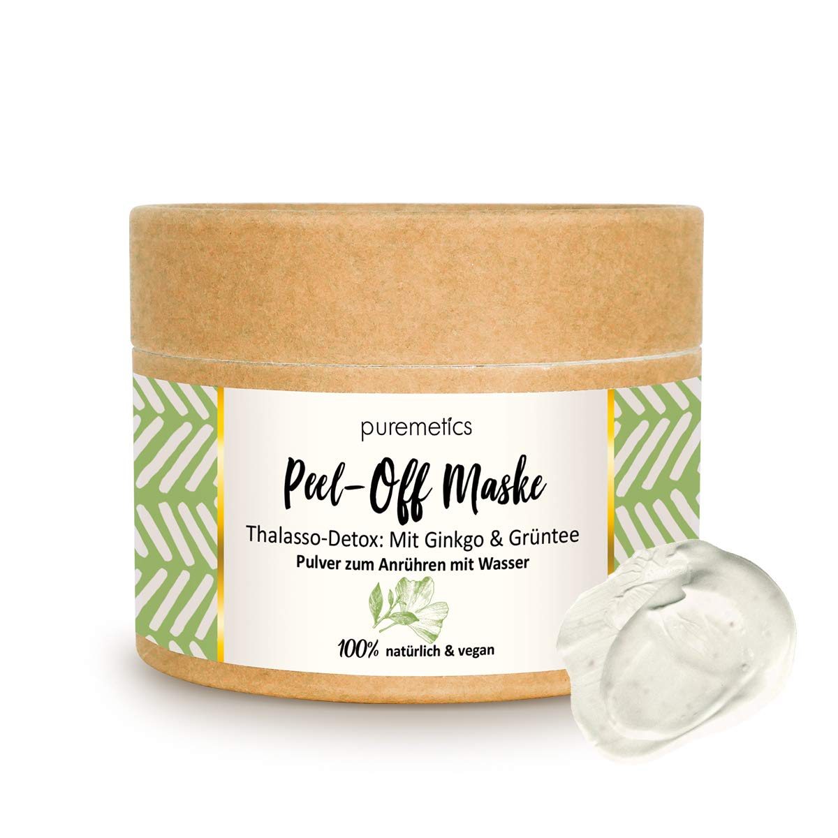 puremetics Peel-Off Maske " Ginkgo Grüntee " (65g 7 Anwendungen) für alle Hauttypen Thalasso Detox Zero Waste 100 natürlich, vegan plastikfrei Naturkosmetik ohne Plastik