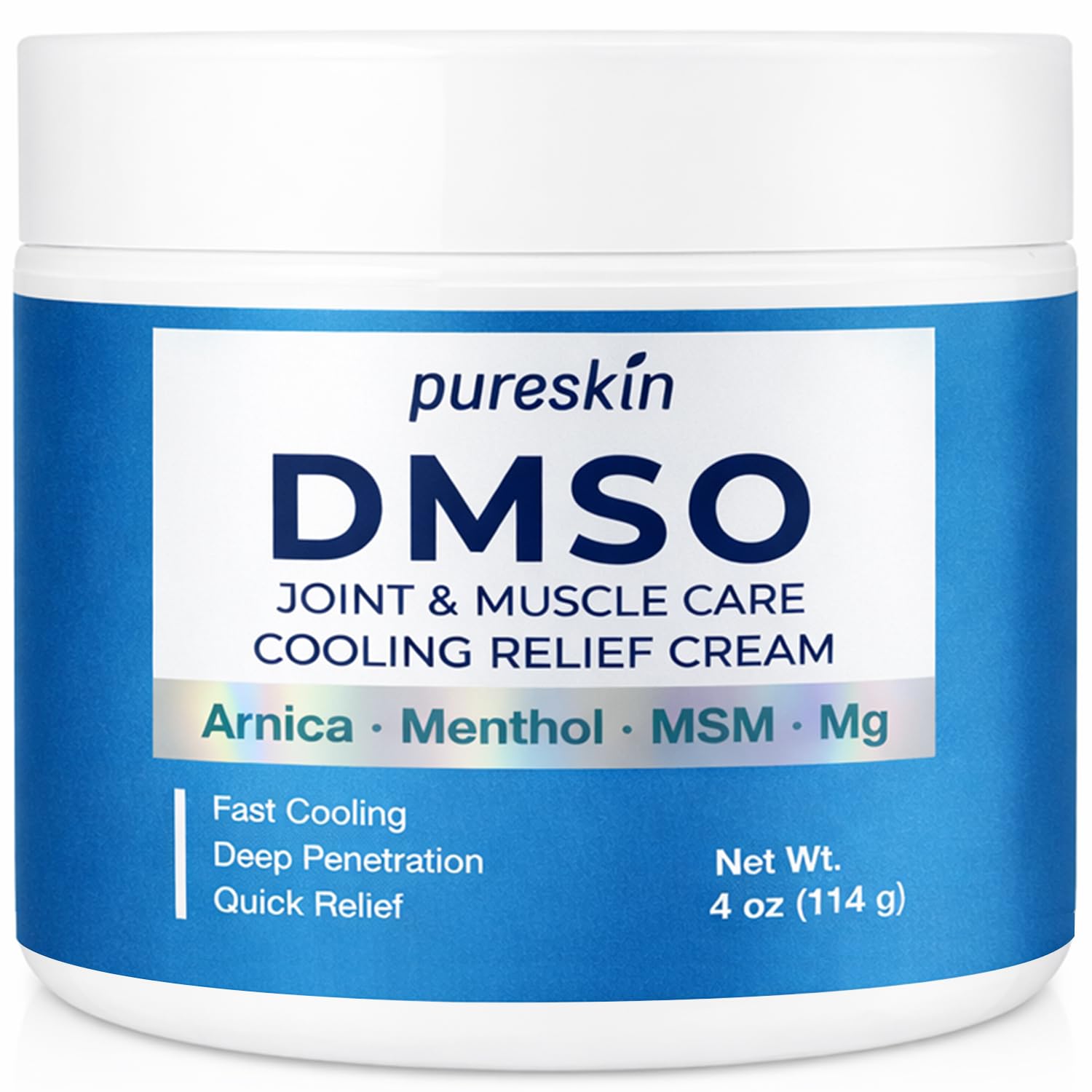 PURESKIN DMSO Joint Muscle Cooling Cream is designed for those who want effective cooling comfort without harsh sensations or heavy fragrance. Our fast-absorbing formula delivers a refreshing cooling effect while remaining gentle on the skin, making it suitable for daily use. Powered by DMSO, this advanced cream supports targeted delivery of key ingredients to areas affected by muscle discomfort, joint stiffness, and physical stress from daily activities or exercise. The carefully balanced cooling system provides long-lasting comfort without excessive menthol odor or irritation. Formulated with a supportive blend of Arnica, MSM, Magnesium Chloride, Vitamin E, and Aloe Vera, PURESKIN helps promote muscle relaxation, joint flexibility, and skin hydration. The non-greasy texture absorbs quickly, allowing you to move freely without residue. Whether used before workouts, after physical activity, or as part of a daily mobility routine, PURESKIN is a trusted companion for active individuals and mature adults seeking consistent joint and muscle support.Daily Use for Active Mature Adults Perfect for athletes, fitness enthusiasts, and adults seeking daily joint and muscle care. Lightweight cream texture makes it easy to apply before or after activity, or anytime muscles feel tight. Gentle Cooling, Low Menthol Scent Designed with a balanced cooling system to deliver a refreshing sensation without overwhelming menthol odor or burning sensation, making it suitable for regular use and sensitive skin types. Multi-Ingredient Joint Muscle Care Blend Enriched with Arnica, MSM, Magnesium Chloride, Vitamin E, and Aloe Vera to support muscle relaxation, joint flexibility, and skin comfort — ideal for active lifestyles and daily mobility support. Powered by DMSO for Deep Support Formulated with Dimethyl Sulfoxide (DMSO) to support effective ingredient delivery, helping provide targeted comfort for joints and muscles affected by overuse, exercise, or daily movement. Fast-Absorbing Cooling Comfort Advanced cooling formula absorbs quickly without greasy residue, delivering a long-lasting cooling sensation to help soothe muscle discomfort, joint stiffness, and everyday soreness — cooling without harsh irritation.