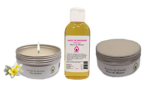 : Sexy Gift Set: MONOI FLOWER - a Monoi Flower vegetable massage candle (paraffin-free), a 100ml Monoi-scented massage oil (perfect for on-the-go use), and an 80g Monoi Flower fragranced shea butter. The perfect kit for a gentle and sensual escape. Both the massage candle and massage oil are vegetable-based. Made in France, paraben-free. ? Made, packaged, and shipped in France! Ingredients: Helianthus annuus seed oil, Daucus carota sativa root extract, Parfum (Fragrance). P.when('A').execute(function(A) { A.on('a:expander:toggle_description:toggle:collapse', function(data) { window.scroll(0, data.expander. expander[0].offsetTop-100) }) }) Directions: Apply a small amount of oil to your hands and gently massage onto the skin using circular motions. Avoid sensitive areas and discontinue use if irritation occurs. Safety Warning: May cause skin irritation or allergic reactions. Avoid use with latex condoms or other latex products. Keep out of reach of children. Do not ingest. store in a cool, dry place. See moreA perfect balance of precious plant oils allows for natural glide, excellent absorption, and an enchanting scent. ? 100 natural and organic, made from plant-based resources, helping the body relax. Our nourishing and stimulating formula contains high-quality plant oils and vitamin E, leaving skin feeling soft and inviting, ready to be caressed with a pleasant massage. This massage oil is ideal for intimate massages or simply to apply after a tiring day to relax joints, muscles, and the back. Massage oil is the best choice for a sensual massage, creating a romantic moment with your loved one. Erotic and natural.Description du produit Coffret cadeau sexy : FLEUR DE MONOI -, une Bougie de massage végétale Fleur de monoï, sans paraffine,- Une huile de massage affolante au monoï 100 ml, qui s emporte partout, - un beurre de karité parfum fleur de monoï en 80 gr. Le kit parfait pour pour une évasion douce et sensuelle. bougie de massage et huile de massage sont végétale. Les produits sont fabriqués en France, sans parabène. ? Fabrication, conditionnement et expédition française ! Ingrédients Helianthus annuus seed oil, Daucus carota sativa root extract, Parfum (Fragrance). P.when('A').execute(function(A) { A.on('a:expander:toggle_description:toggle:collapse', function(data) { window.scroll(0, data.expander. expander[0].offsetTop-100) }) }) Mode d'emploi Appliquez une petite quantité d'huile sur vos mains et massez doucement sur la peau en effectuant des mouvements circulaires. Évitez les zones sensibles et arrêtez l'utilisation en cas d'irritation. Avertissement De Sûreté Peut provoquer une irritation de la peau ou des réactions allergiques. Évitez de l'utiliser avec des préservatifs en latex ou d'autres produits en latex. Tenir hors de portée des enfants. Ne pas ingérer. Conserver dans un endroit frais et sec. Voir plusÉquilibre parfait entre le parfum des huiles vegetales précieuses utilisées permettant un glissement naturel, un pouvoir d'absorption parfait et une odeur envoûtante. ? 100 Naturelle et bio à base de ressources végétales. qui aident le corps à être plus détendu. Notre formule nourrissante et stimulante contient des huiles végétales de haute qualité et de la vitamine E, laissant la peau avec un toucher doux et invitant, prête à être caressée avec un agréable massage. Huile de Massage idéal pour les massages intimes ou simplement à appliquer après une journée fatigante pour détendre les articulations, les muscles, le dos. Huile de massage c'est le Meilleur choix pour un massage sensuelle qui fait un moment romantique avec celui que vous aimez. érotique et naturel.Purespa Kit de massage professionnelle - Huile de massage Sensuelle(Fleur de Monoï, 100 ml) 1 bougie de masssage naturelle 1 beurre de karité