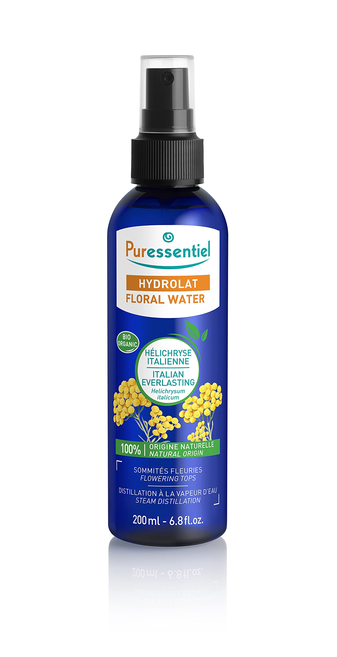Helichrysum hydrosol for oily, blemish-prone, acne-prone skin. Properties: - Cleanses, purifies, tones - Regulates excess sebum - Soothes scalp itchiness - Prevents dandruff. 100 Pure and Natural, Ecocert certified organic. PRECAUTIONS FOR USE: Do not use on children under 3 years of age. For external use only. Keep out of reach of children. After opening, store in a cool, dark place. DIRECTIONS FOR USE: Apply morning and evening using a cotton pad, as a compress, or as a mist to the face, body, or scalp. INGREDIENTS HELICHRYSUM ITALICUM (EVERLASTING) FLOWER WATER , LEUCONOSTOC RADISH ROOT FERMENT FILTRATE, AQUA (WATER), LINALOOL . DIRECTIONS FOR USE Apply morning and evening using a cotton pad, as a compress, or as a mist to the face, body, or scalp. SAFETY WARNING Do not use on children under 3 years of age. For external use only. Keep out of reach of children. Once opened, store in a cool, dark place. Avoid contact with eyes. See moreHYDRAQUA TECHNOLOGY: Its unique, 100 natural, plant-based preservation system, free of chemical preservatives, guarantees optimal hydration. DIRECTIONS FOR USE: Apply morning and evening with a cotton pad, as a compress, or as a mist to the face, body, or scalp. TONING PROPERTIES: Reduces skin redness. Tones delicate skin. Repairs damaged skin. NATURAL AND CERTIFIED COMPOSITION: 100 natural origin. 98 of the total ingredients are organically grown. Directly from the distillation of organic plants. FOR DELICATE AND DAMAGED SKIN: Italian helichrysum hydrosol is perfectly suited to delicate and damaged skin. Its main use: daily, in the evening when removing makeup.Puressentiel – Hydrolat d'Hélichryse Italienne BIO – 100 Pure et naturelle - certifié Ecocert – Peaux délicates agressées – Tonifie et répare – Fabrication française - 200 mlDESCRIPTION DU PRODUIT DESCRIPTION DU PRODUIT Hydrolat d'hélichryse pour peaux grasses à imperfections, sujettes à l'acné. Propriétés : - Assainit, purifie, tonifie - régule l'excès de sébum - Apaise les démangeaisons du cuir chevelu - Prévient l'apparition des pellicules Qualité 100 Pure et Naturelle BIO certifiée Ecocert. PRÉCAUTIONS D'EMPLOI : Ne pas utiliser chez les enfants de moins de 3 ans. Usage externe. Tenir hors de portée des enfants. Conserver après ouverture au frais et à l'abri de la lumière. MODE D'EMPLOI : Appliquer matin et soir à l'aide d'un coton, en compresse ou en brumisation sur le visage, le corps ou le cuir chevelu. INGRÉDIENTS HELICHRYSUM ITALICUM (EVERLASTING) FLOWER WATER , LEUCONOSTOC RADISH ROOT FERMENT FILTRATE, AQUA (WATER), LINALOOL . MODE D'EMPLOI Appliquer matin et soir à l'aide d'un coton, en compresse ou en brumisation sur le visage, le corps ou le cuir chevelu. AVERTISSEMENT DE SÉCURITÉ Ne pas utiliser chez les enfants de moins de 3 ans. Usage externe. Tenir hors de portée des enfants. Conserver après ouverture au frais et à l'abri de la lumière. Éviter le contact avec les yeux. Voir plusTECHNOLOGIE HYDRAQUA : son système de préservation végétale unique, 100 naturel et sans conservateur chimique, permet de garantir le meilleur des propriétés hydratantes. CONSEILS D'UTILISATION : Appliquer matin et soir à l'aide d'un coton, en compresse ou en brumisation sur le visage, le corps ou le cuir chevelu. PROPRIETES TONIFIANTES : atténue les rougeurs cutanées. Tonifie les peaux délicates. Répare la peau agressée. COMPOSITION NATURELLE ET CERTIFIEE : 100 d'origine naturelle. 98 du total des ingrédients sont issus de l'agriculture biologique. Directement issu de la distillation de plantes bio. POUR LES PEAUX DELICATES ET AGRESSEES : l'hydrolat d'hélichryse italienne convient parfaitement aux peaux délicates et agressées. Sa principale utilisation : en quotidien, le soir au moment du démaquillage.