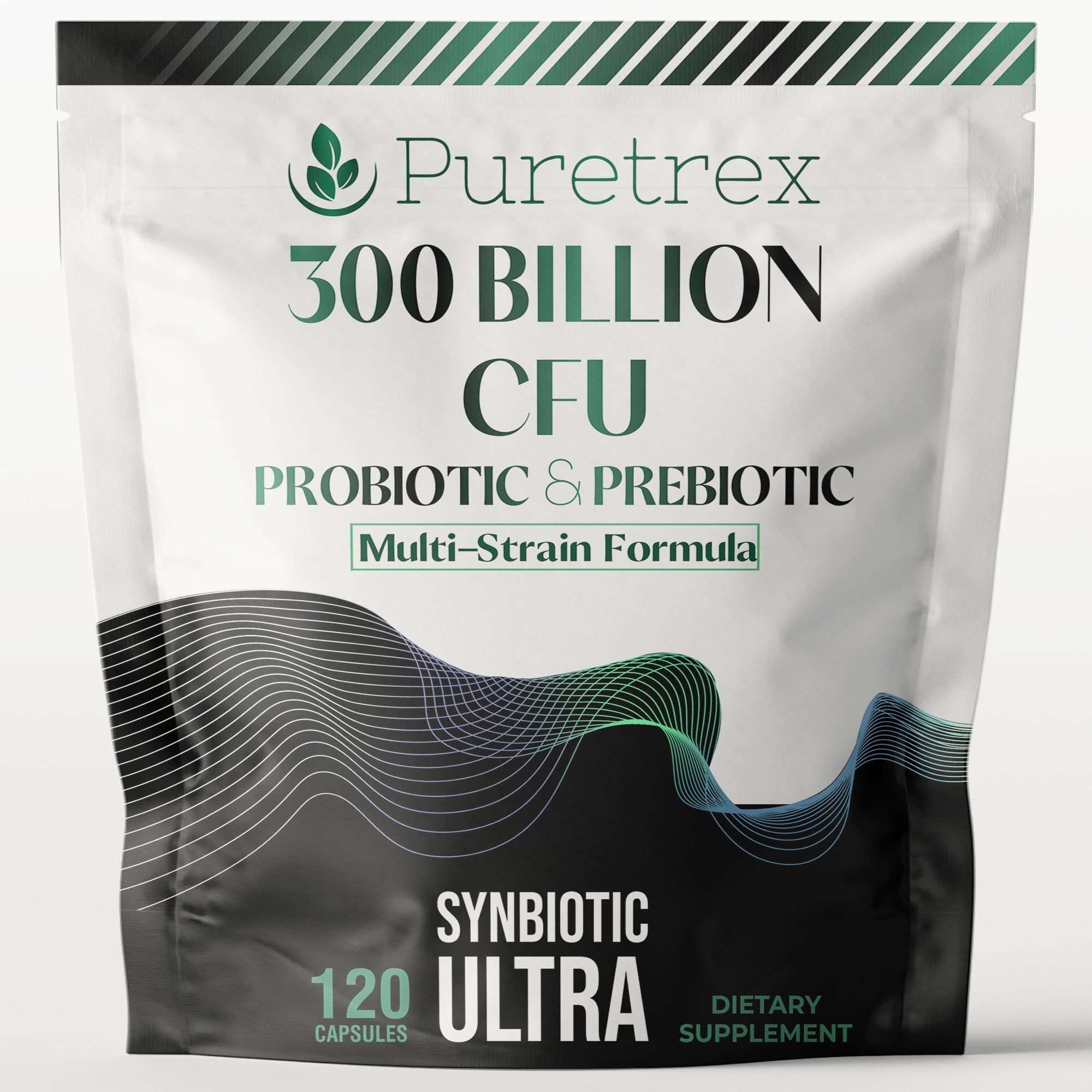 Puretrex 300 Billion CFU Probiotic & Prebiotic Supplement, Multi-Strain Synbiotic Ultra Formula, 120 Vegan Capsules, with Digestive Enzymes and Black Pepper Extract