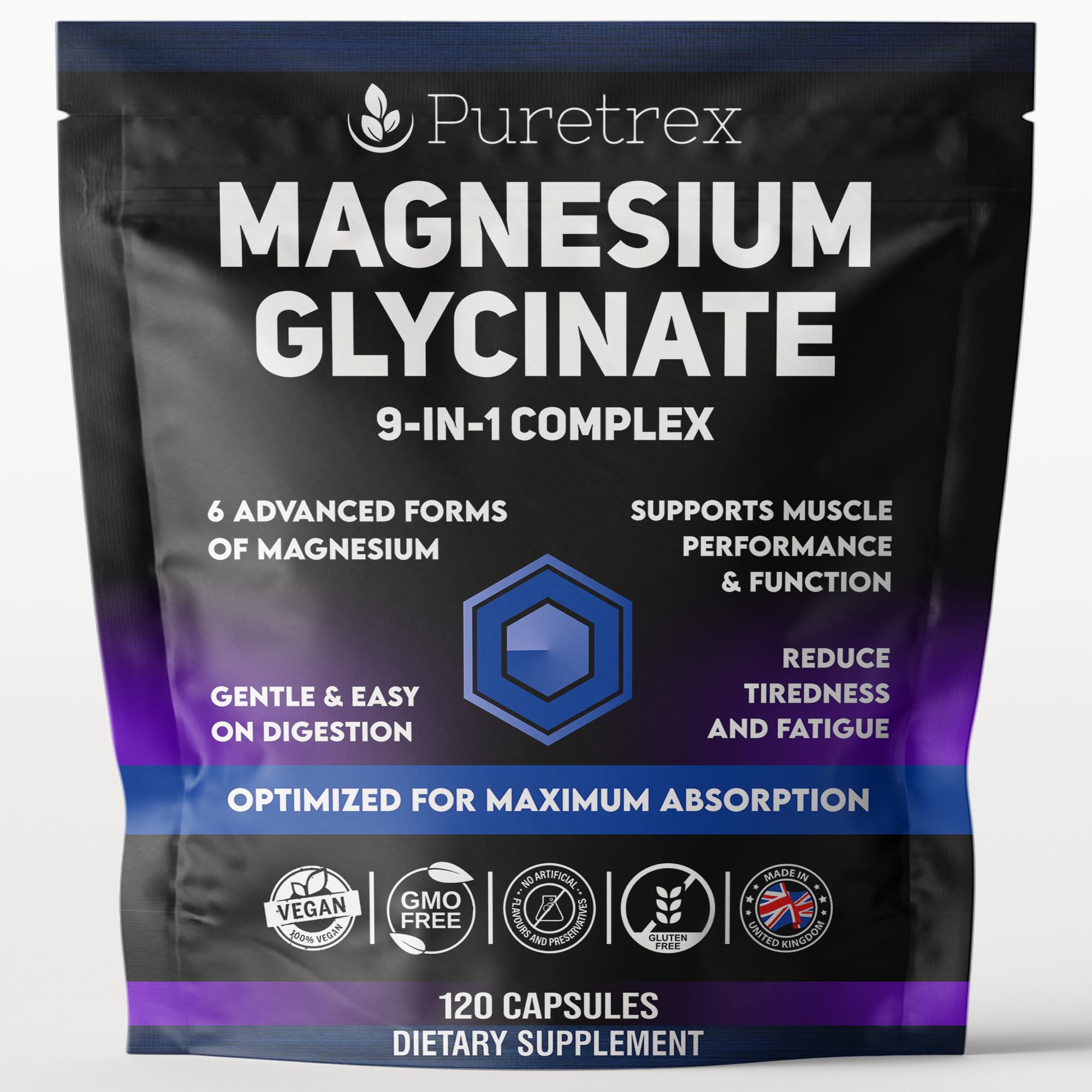 Puretrex Magnesium Glycinate Complex, 120 Vegan Capsules, 9-in-1 Formula with 6 Advanced Forms, Supports Muscle Performance, Maximum Absorption