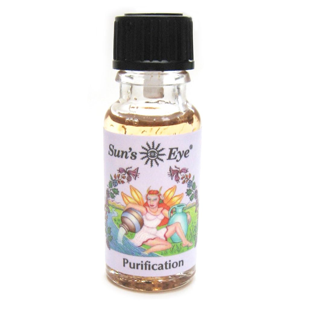 Purification with vetivert for spiritual use. 1 2 ounce bottle of high quality Sun's Eye brand oil. Mystic Blends are hand blended and contain dried herbs for vibrational enhancement. Sun's Eye Oils are made from aromatic herbs, blossoms, leaves, spices, woods, resins and essential oils. When a carrier base is required, soybean is used. They do not use animal products or animal testing. Their musk oils are all derived from herbs. Formulary oils are hand-blended, appropriate to the lunar cycles and other planetary influences.