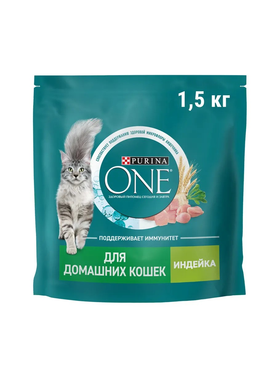 Полное наименование товараСухой корм Purina One с индейкой-злаками для домашних кошек 1.5 кг