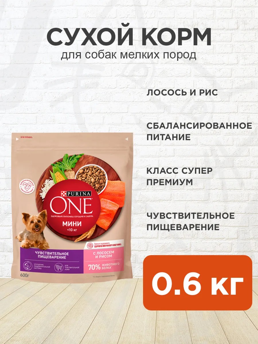 PURINA ONE Корм для собак сухой Мини для пищеварения лосось 0,6 кг