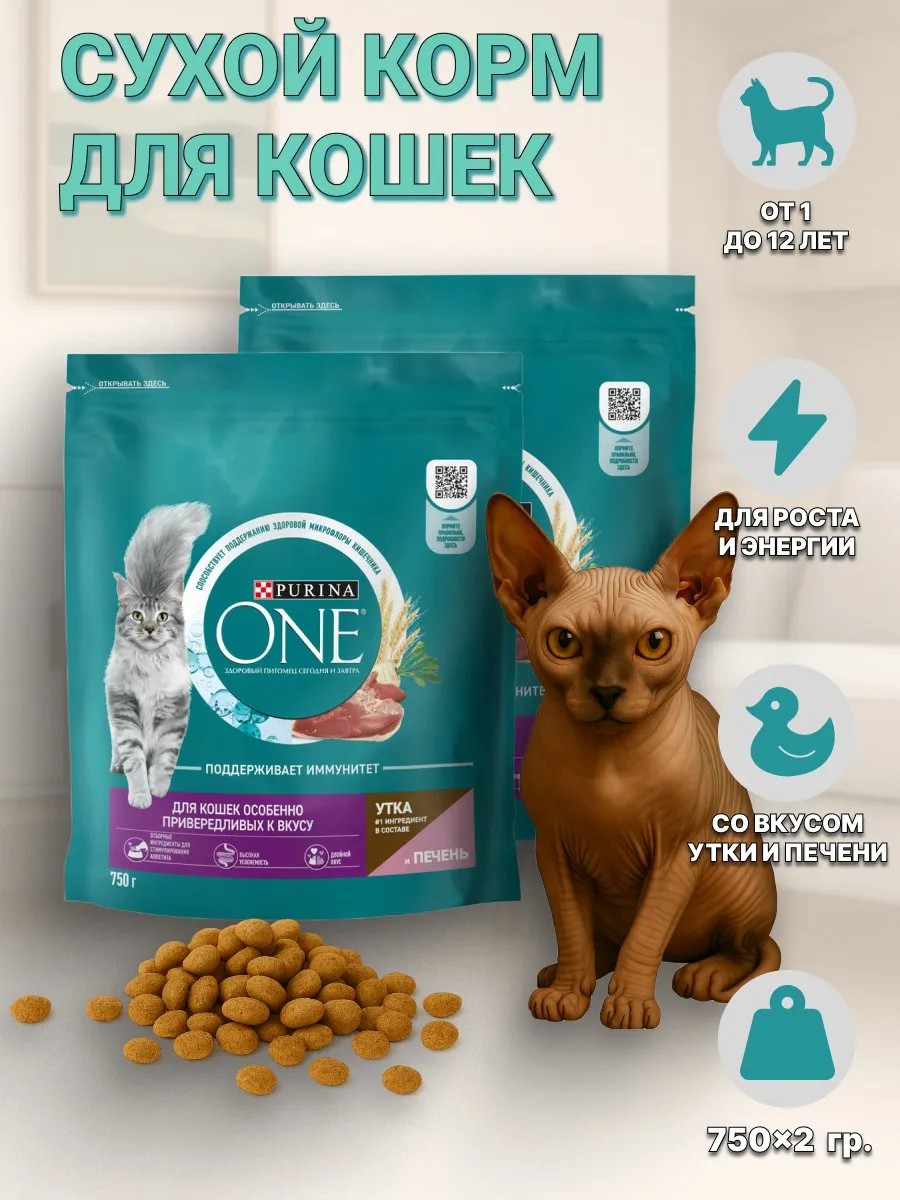 purina one Сухой Корм Пурина Для Привередливых Утка Печень 750 Гр 2 шт