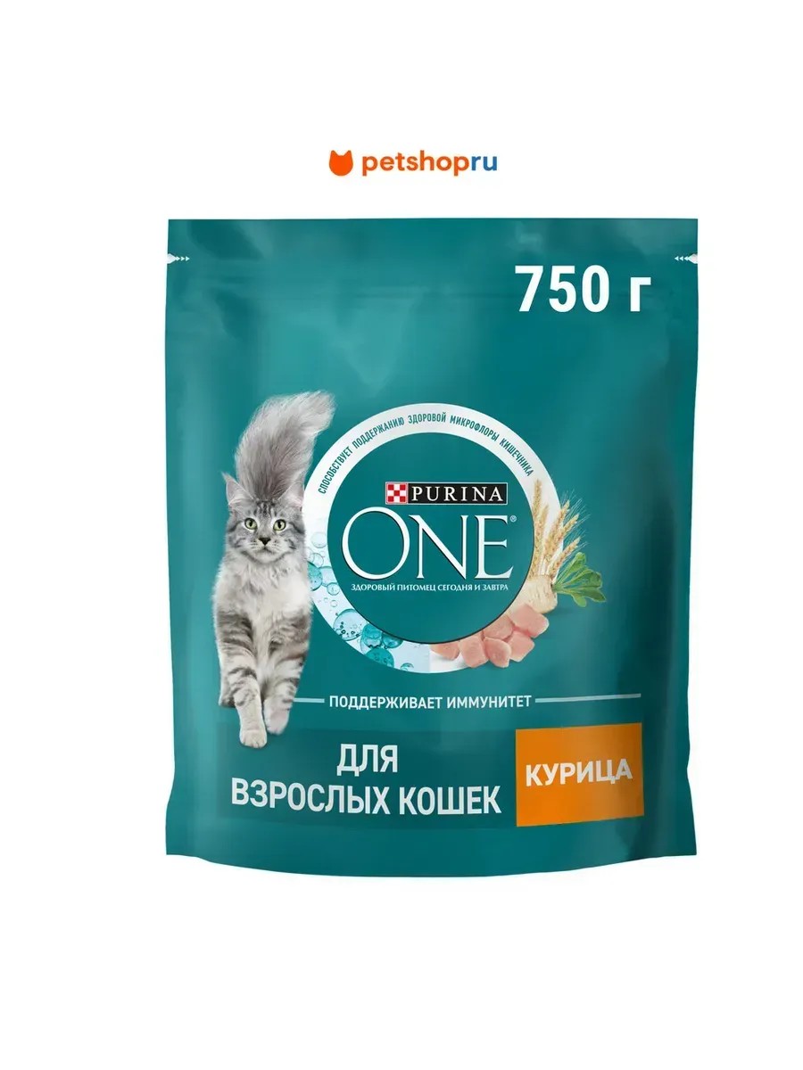 PURINA ONE Сухой корм для взрослых кошек, курица и злаки, 750 гр.