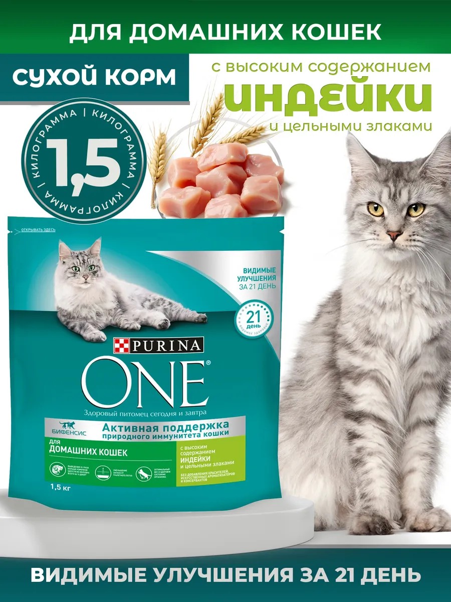PURINA ONE Сухой корм для кошек с индейкой 1,5 кг