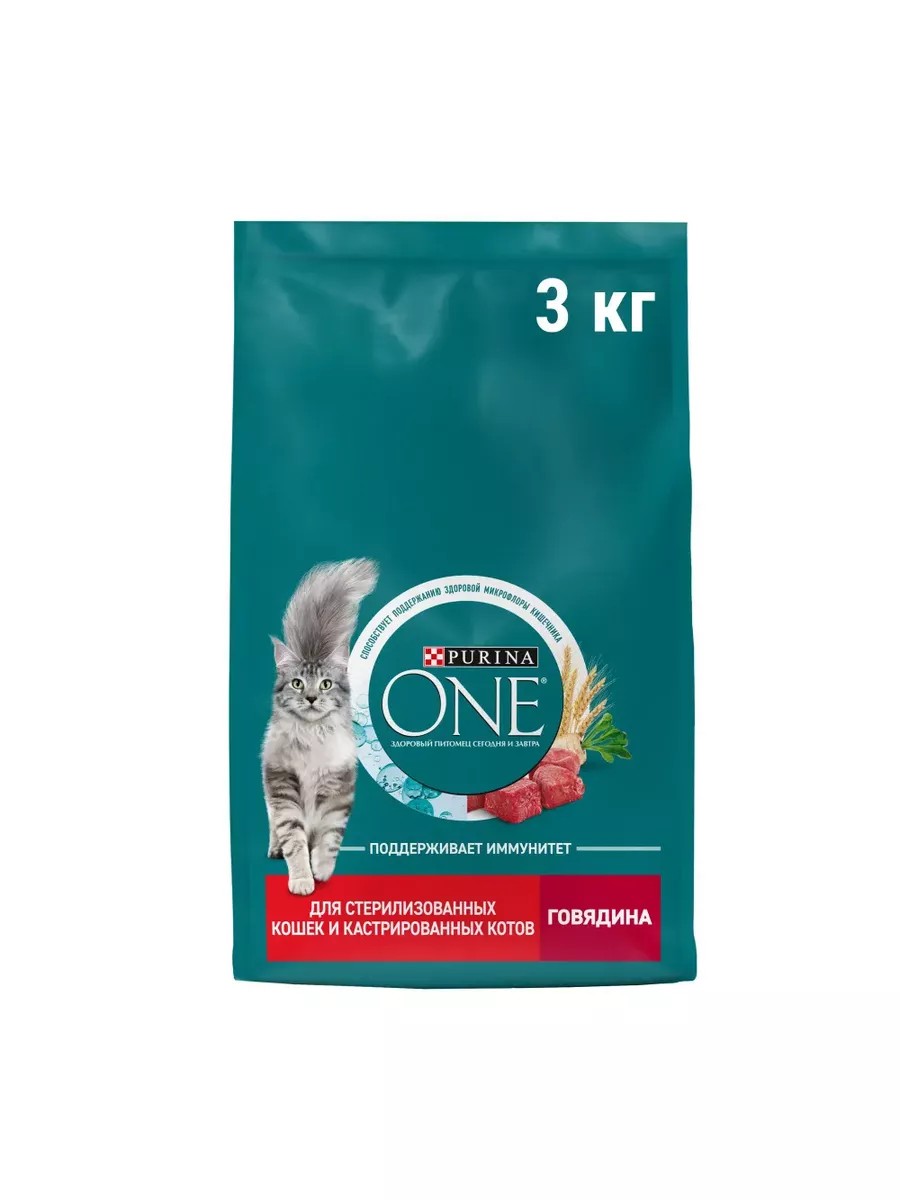 PURINA ONE Сухой корм для кошек с говядиной и пшеницей 3 кг