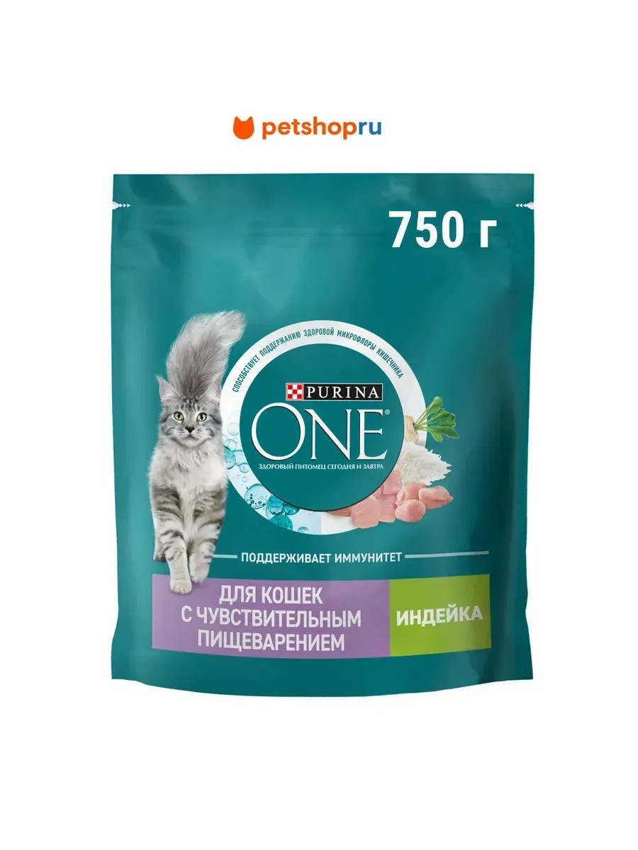 PURINA ONE Сухой корм для кошек с чувств. пищ., индейка, 750 гр.